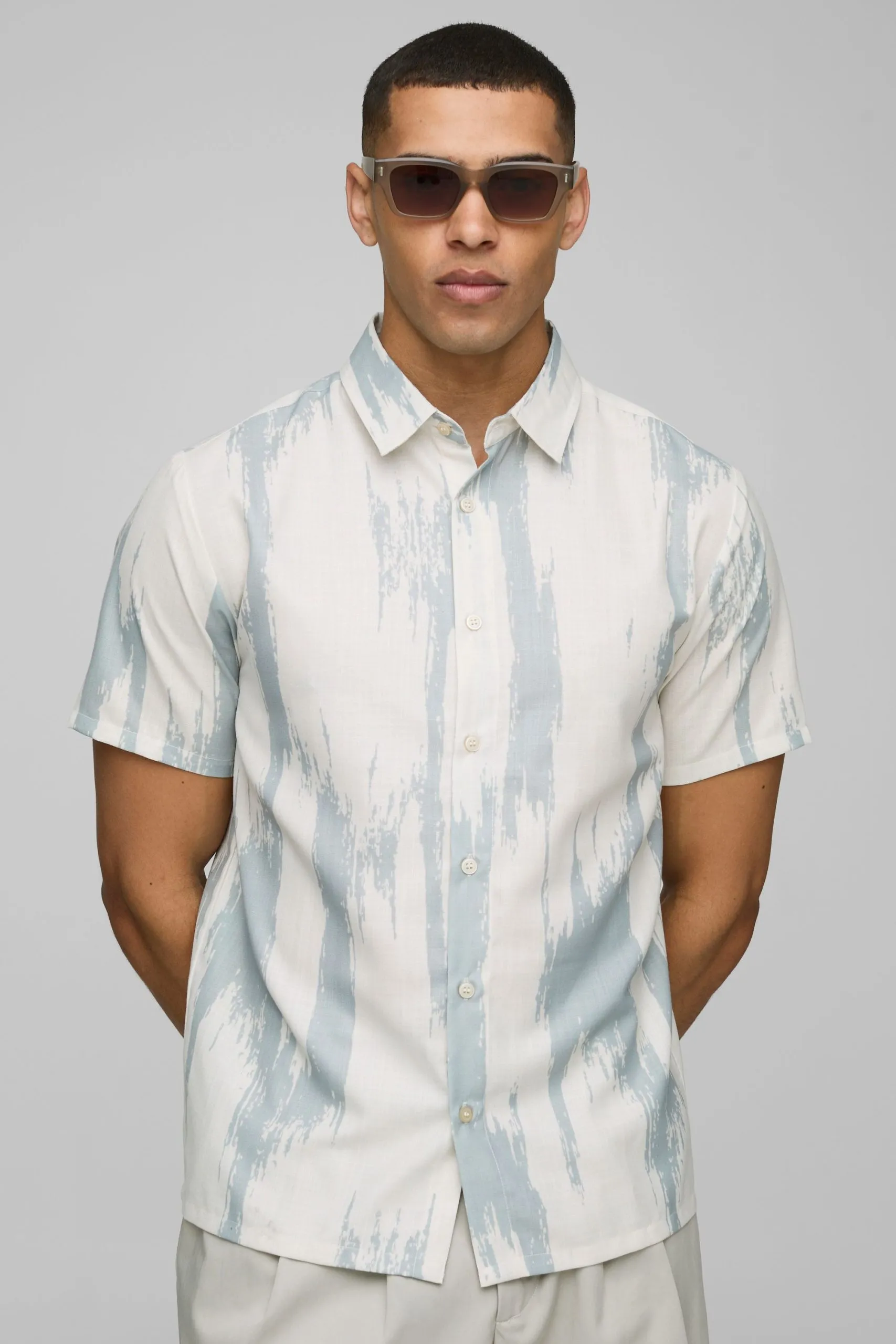 • Regular Short Sleeve Slub Large Scale Abstract Shirt
