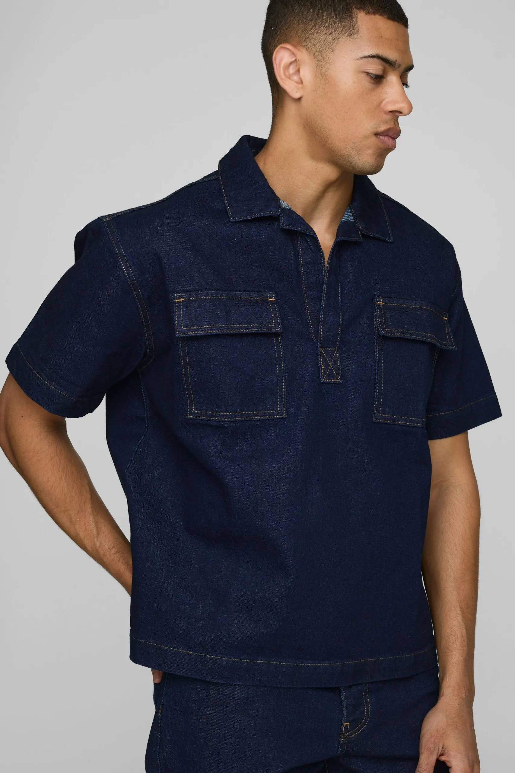 Sale!Short Sleeve Indigo Denim Boxy Rugby Shirt