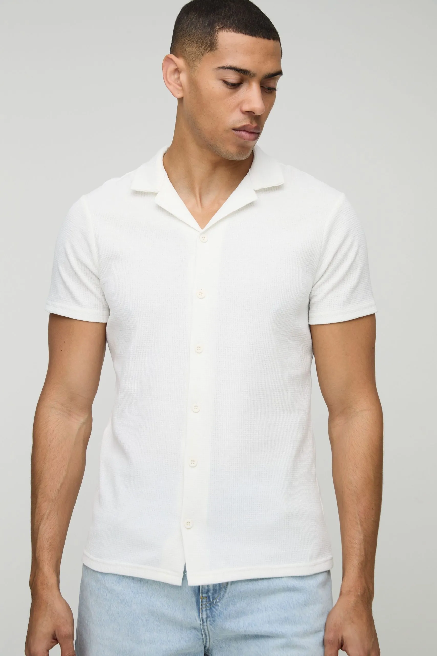 Sale!Slim Fit Short Sleeve Revere Waffle Shirt