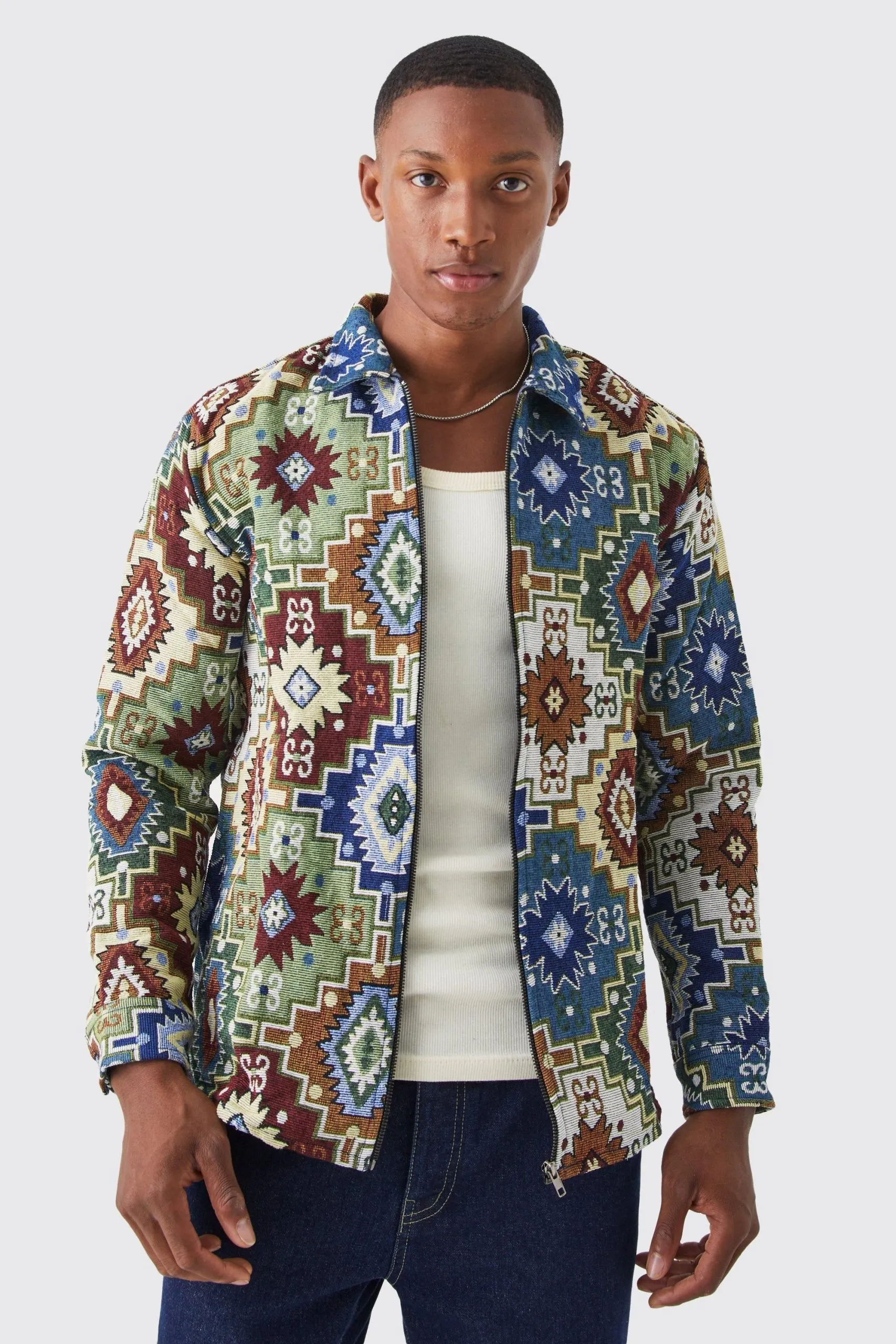 Sale!Long Sleeve Zip Through Patterned Tapestry Overshirt
