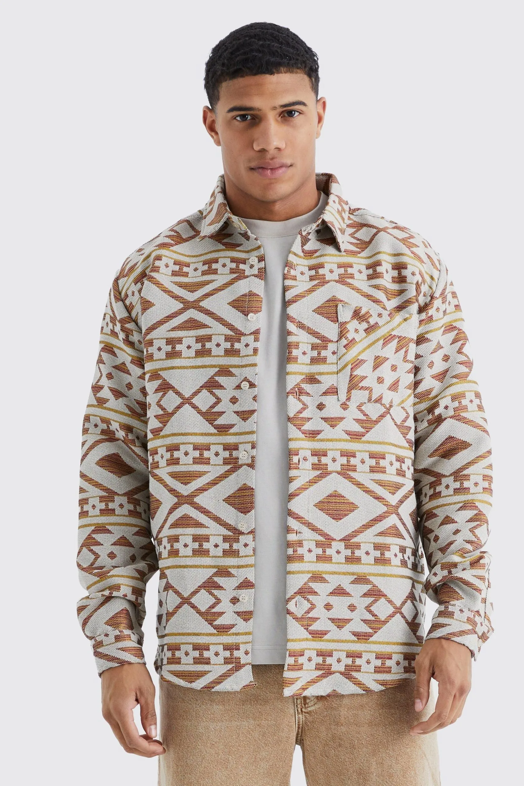 Sale!Long Sleeve Aztec Jacquard Oversized Overshirt