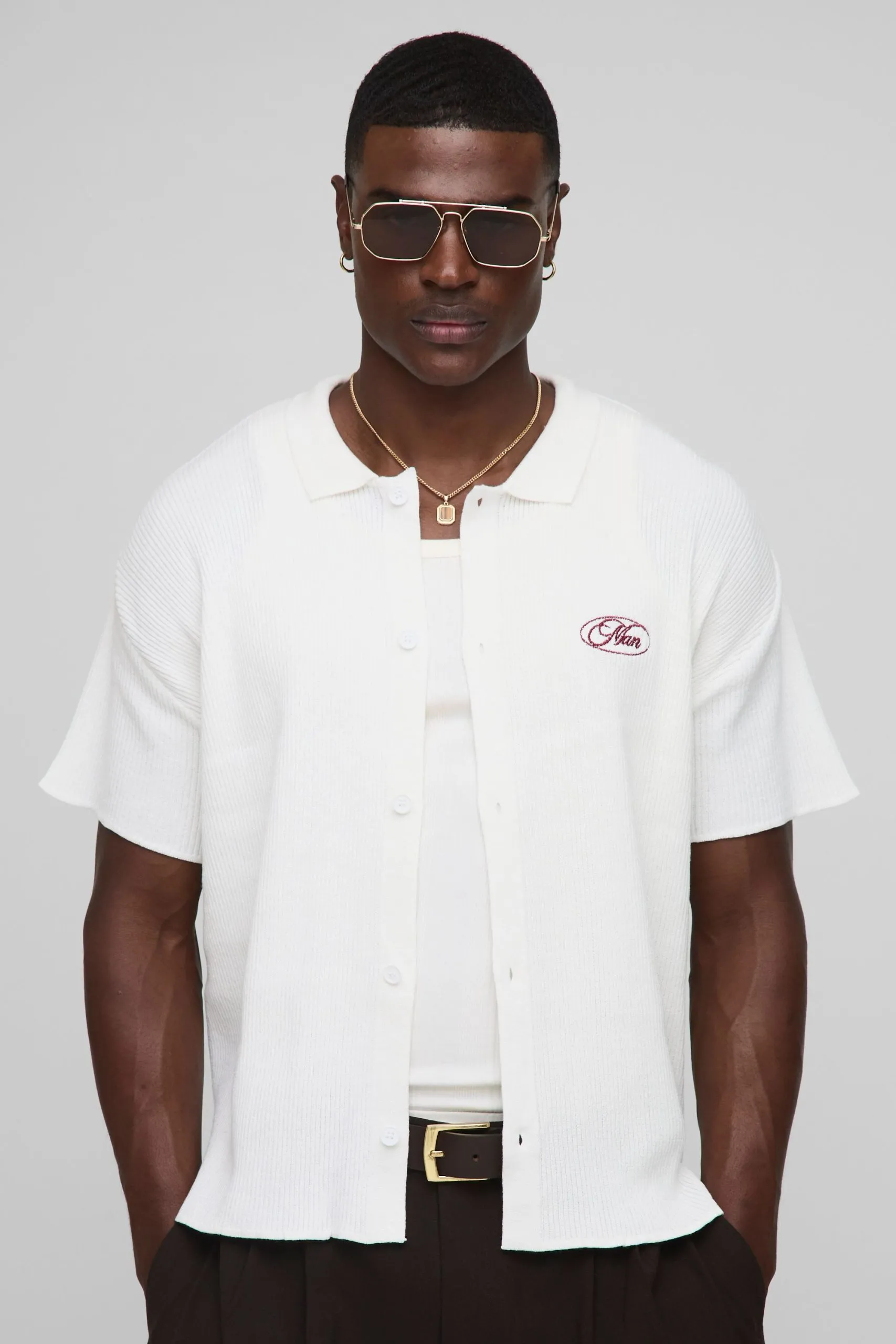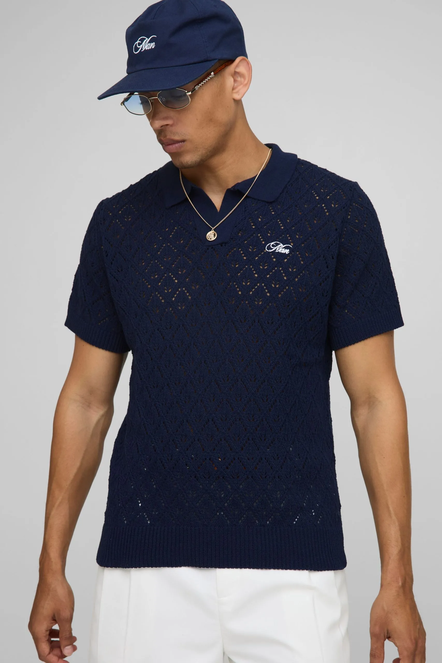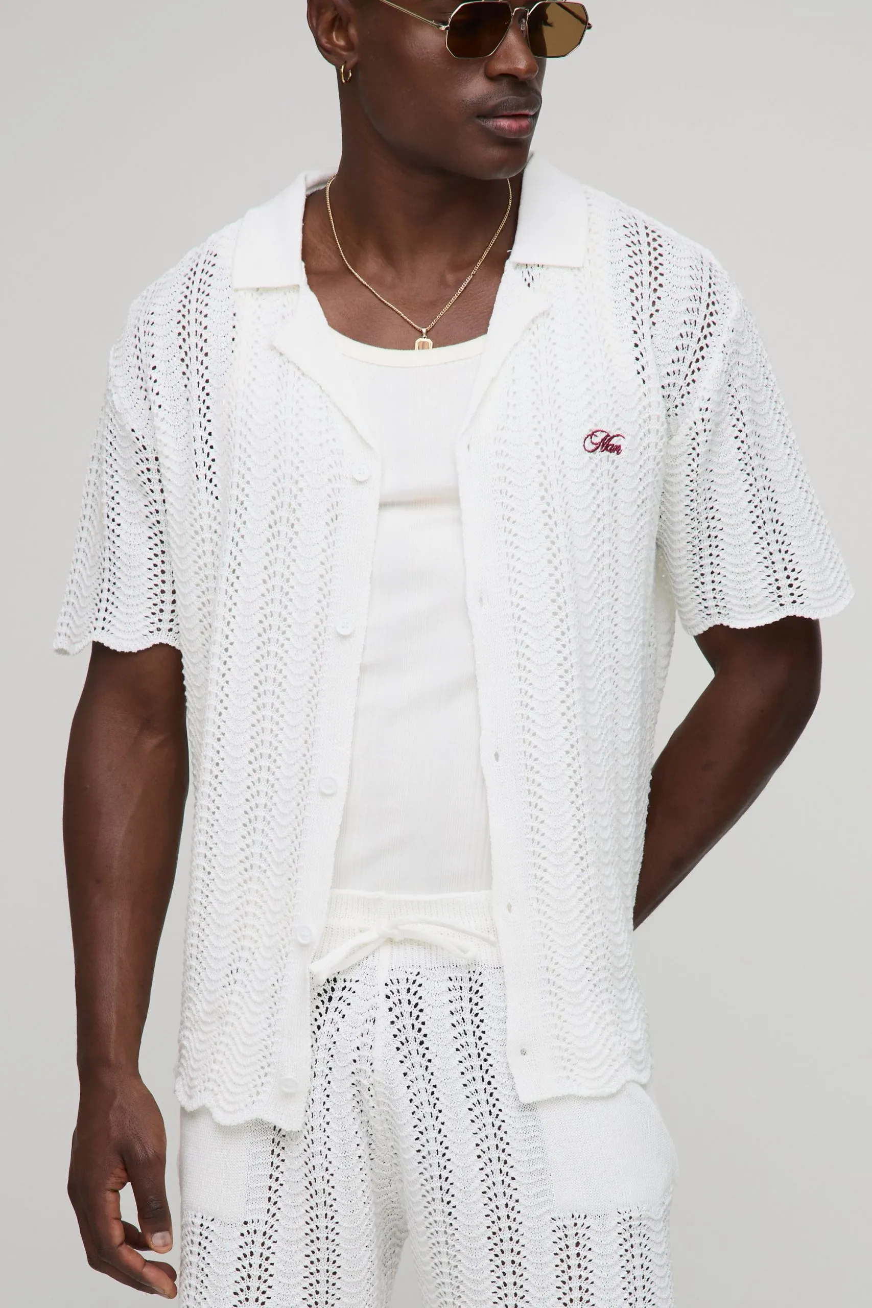 Sale!MAN Embroidered Relaxed Crochet Wavy Knitted Shirt