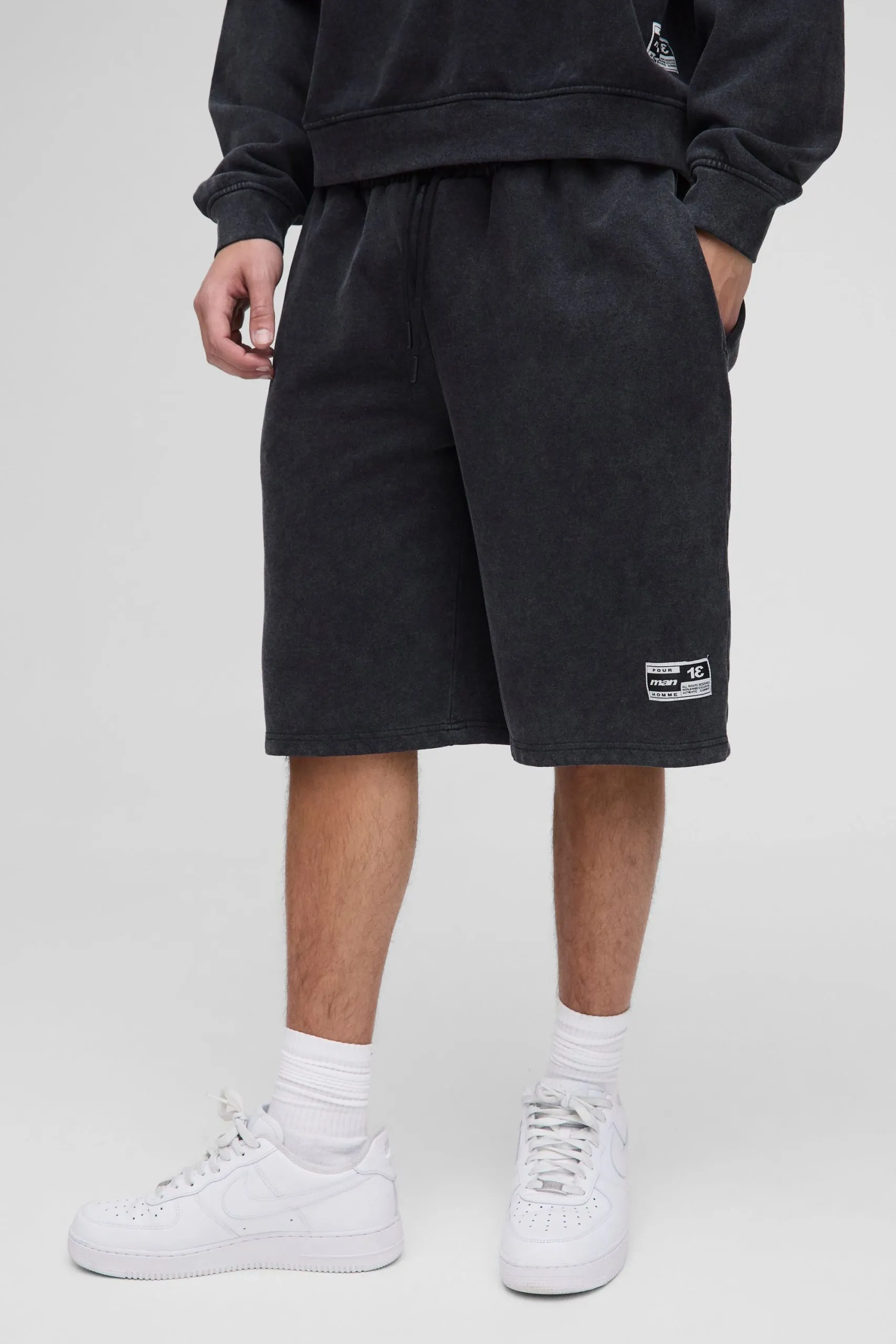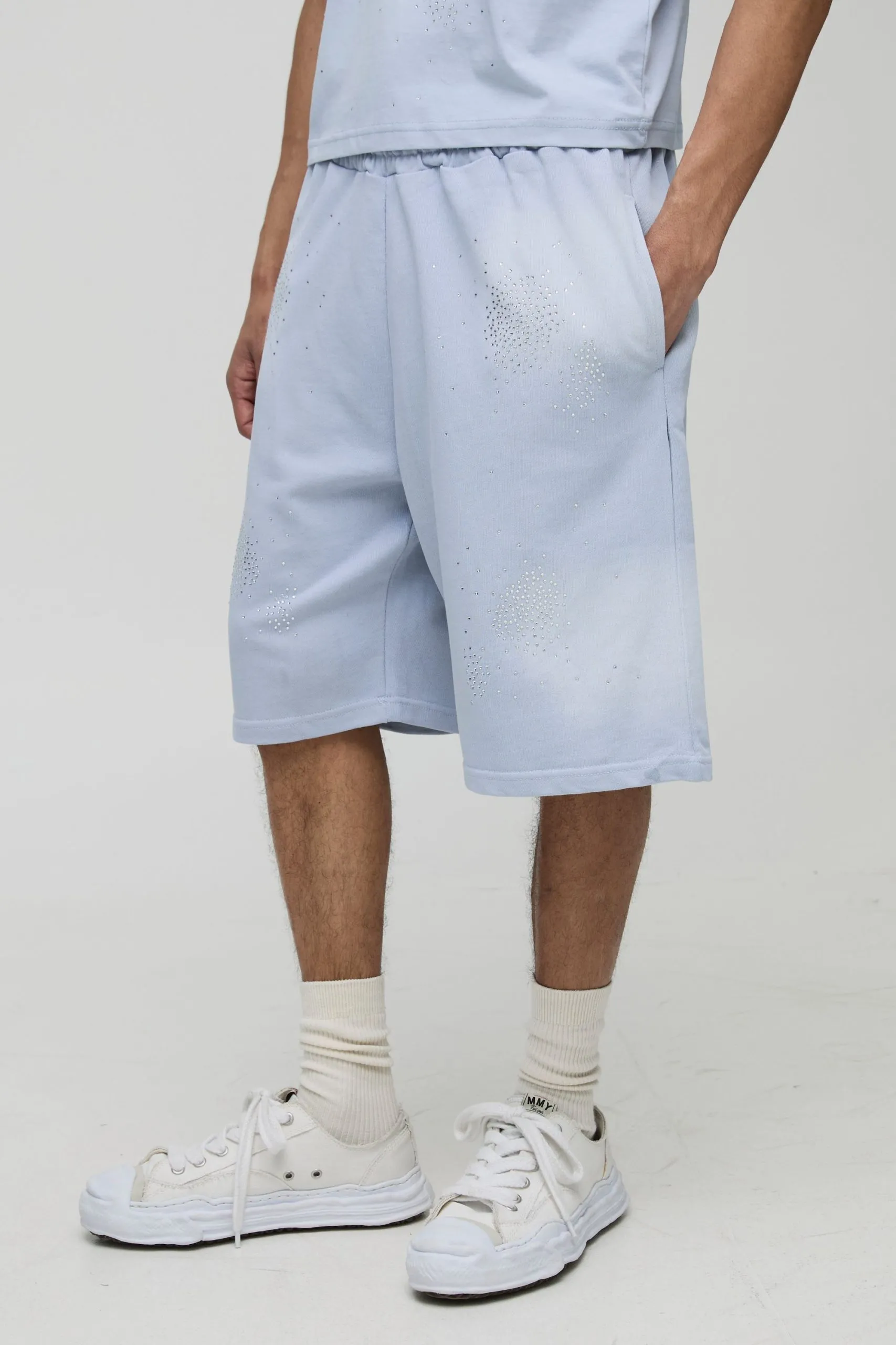 • Oversized Washed Rhinestone Jersey Shorts