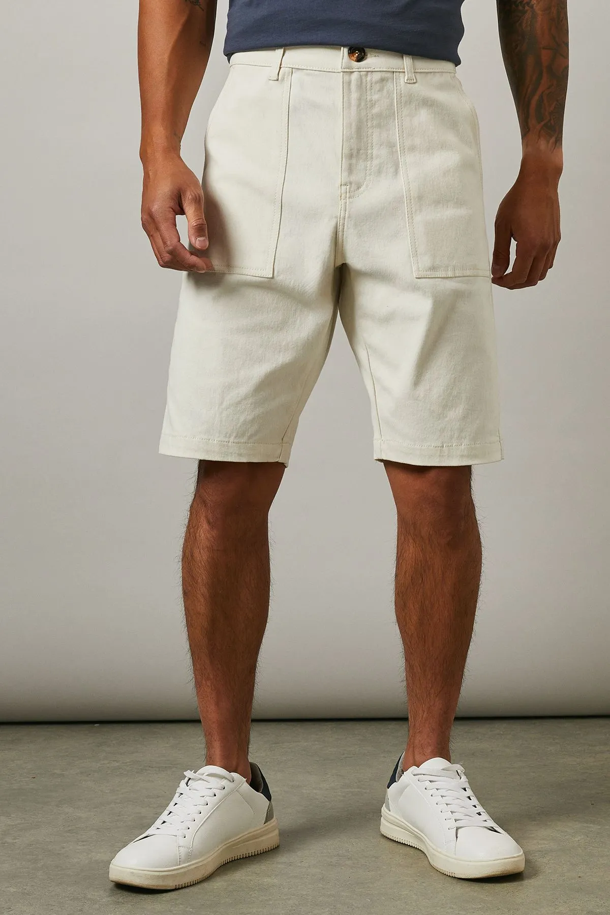 • Off White Cotton Casual Shorts