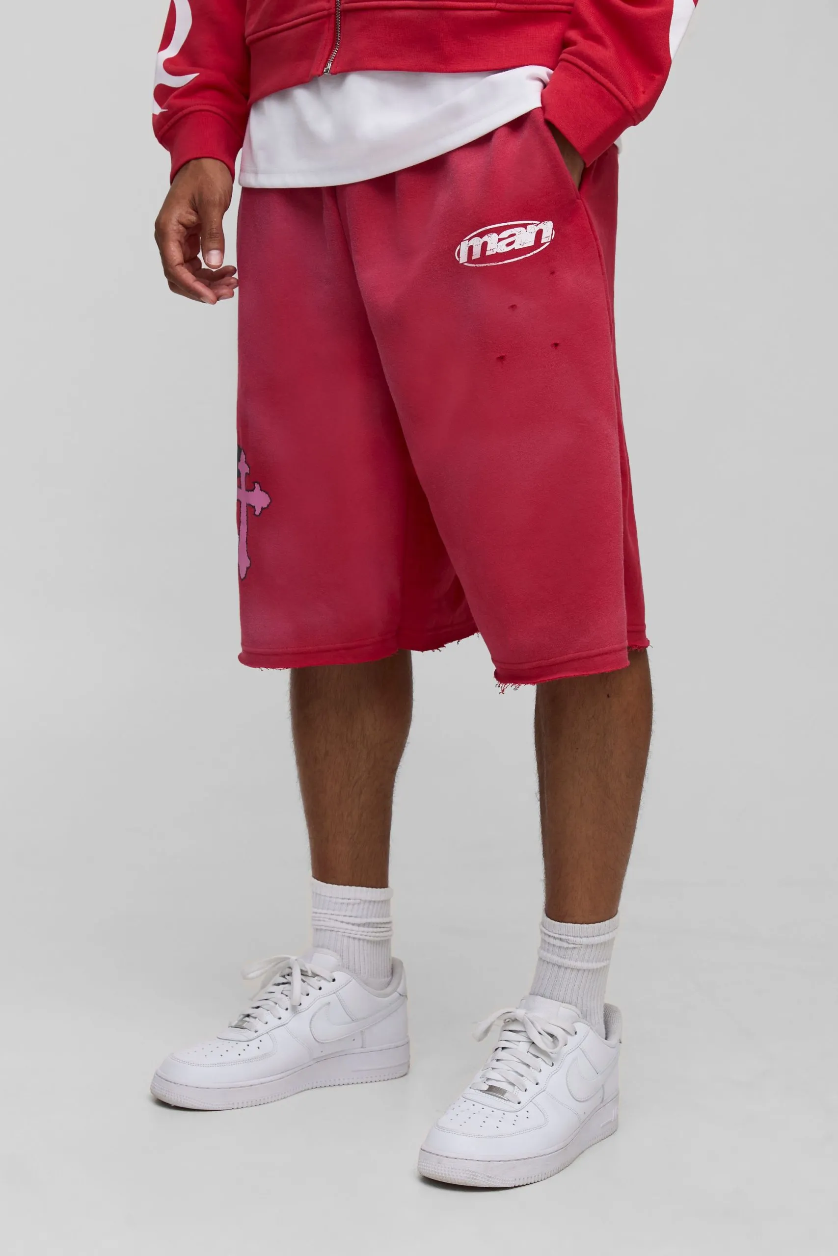 Sale!Cross Graphic Washed Distressed Jersey Jorts
