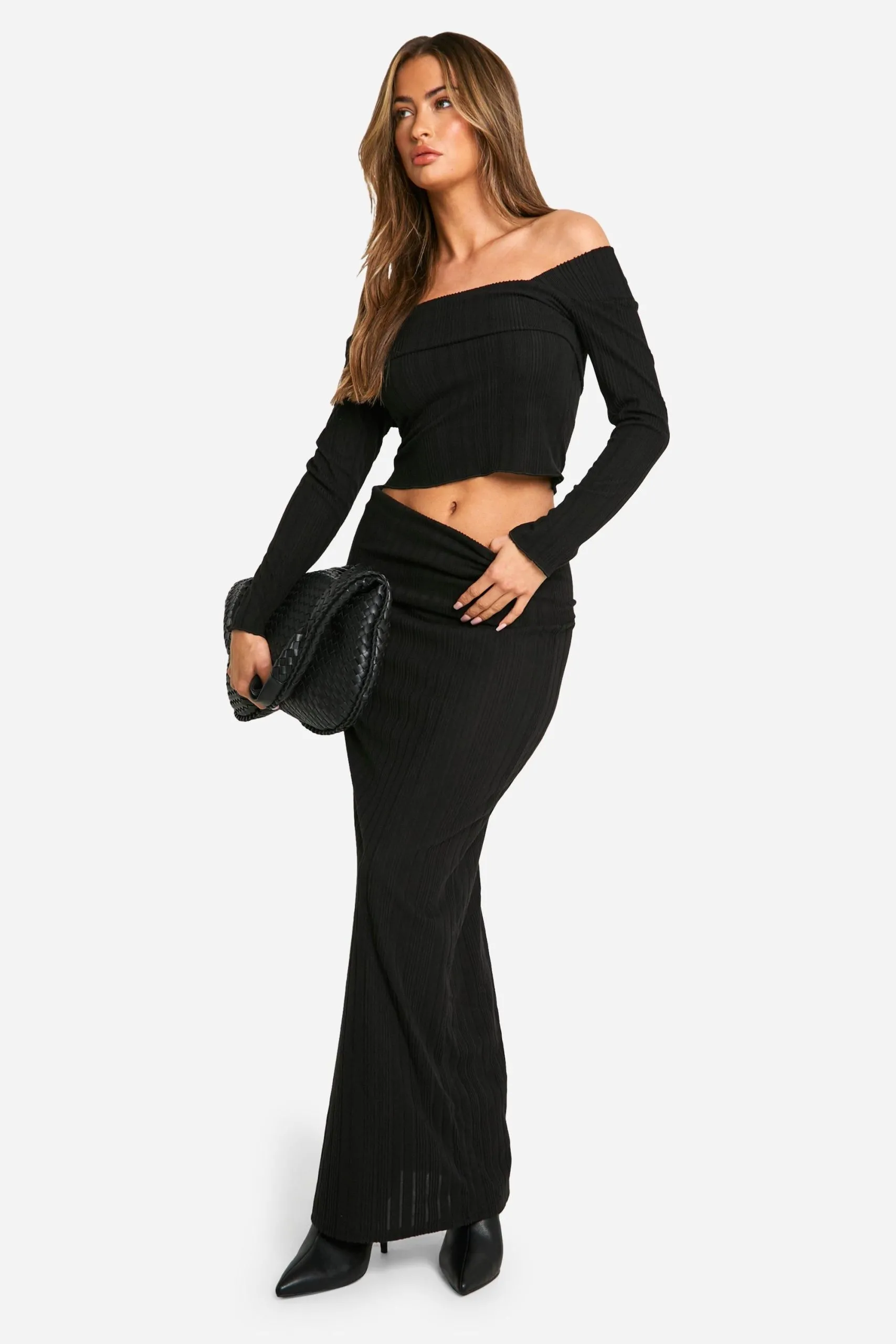 Sale!Brushed Rib Fold Over Waistband Maxi Skirt