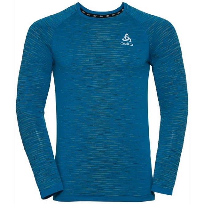 Sale!Sports Shirt Odlo Men’s Long Sleeve Crew Neck Blackcomb Ceramic Mykonos Blue Space Dye