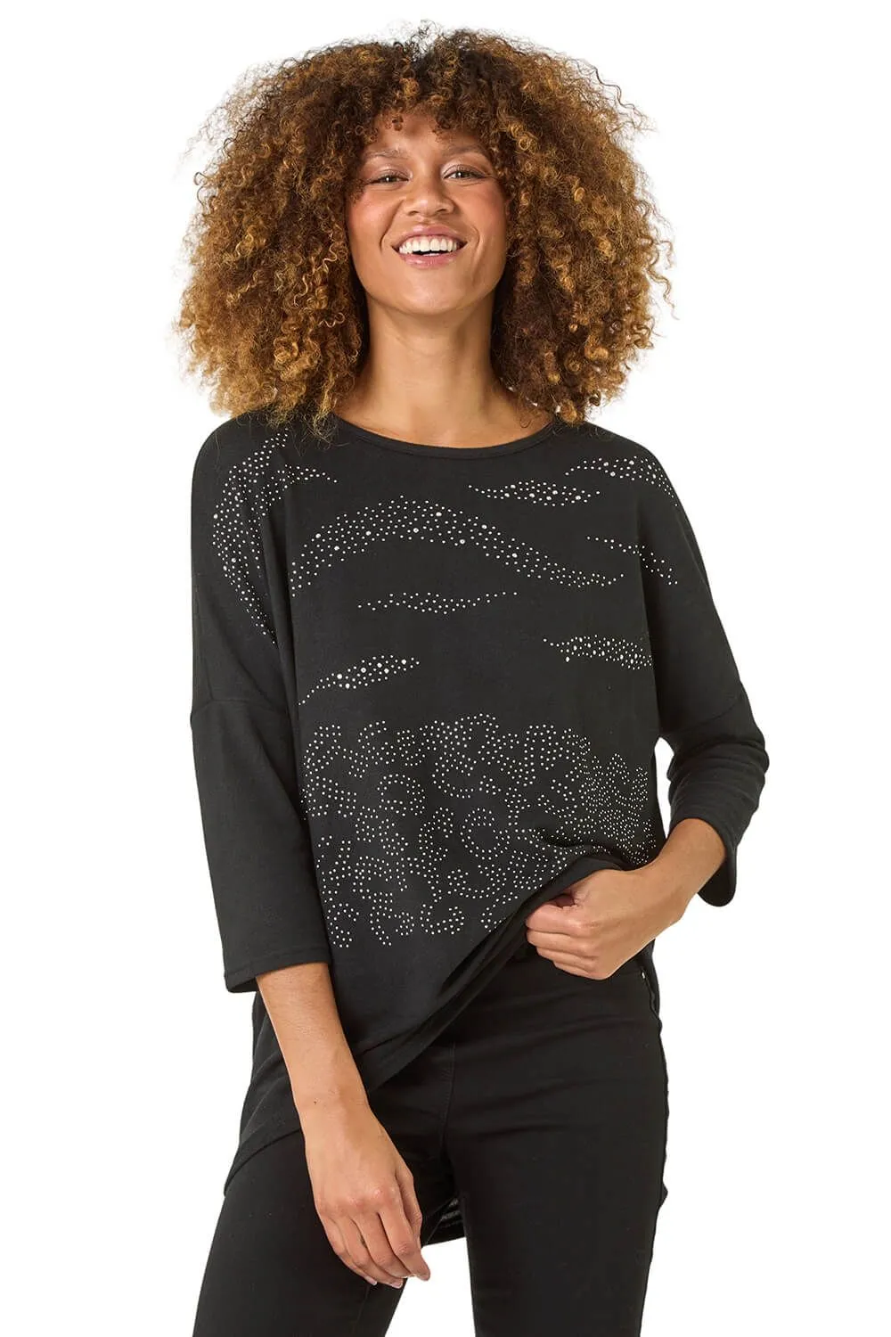 Sale!Animal Print Burnout V-Neck Stretch Shirt
