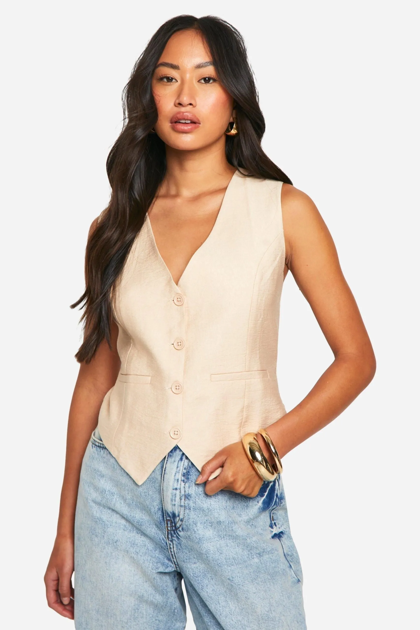Sale!Woven Tailored Collared Zip Through Waistcoat