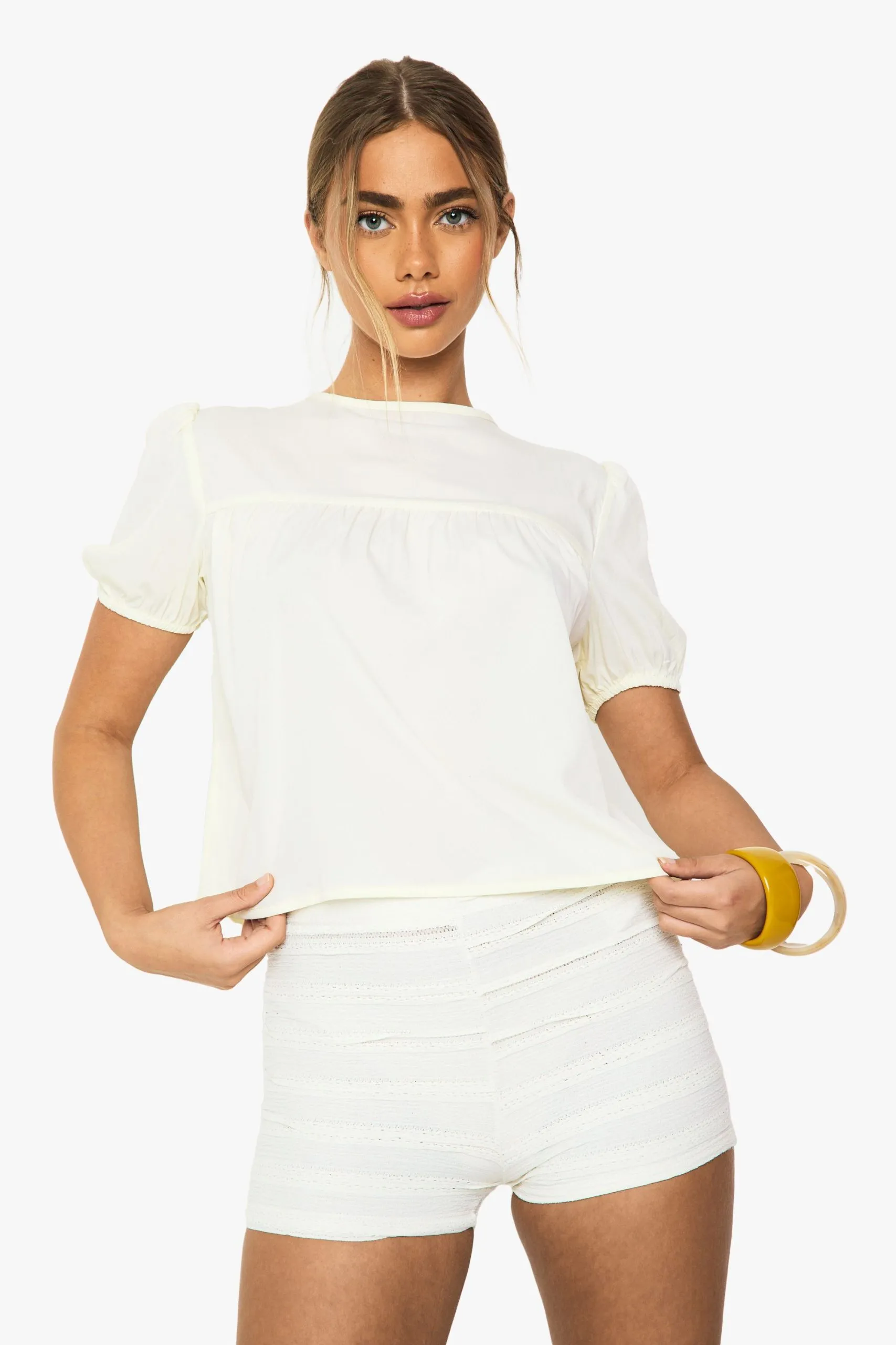 Sale!Woven Sheer Puff Sleeve Smock Top