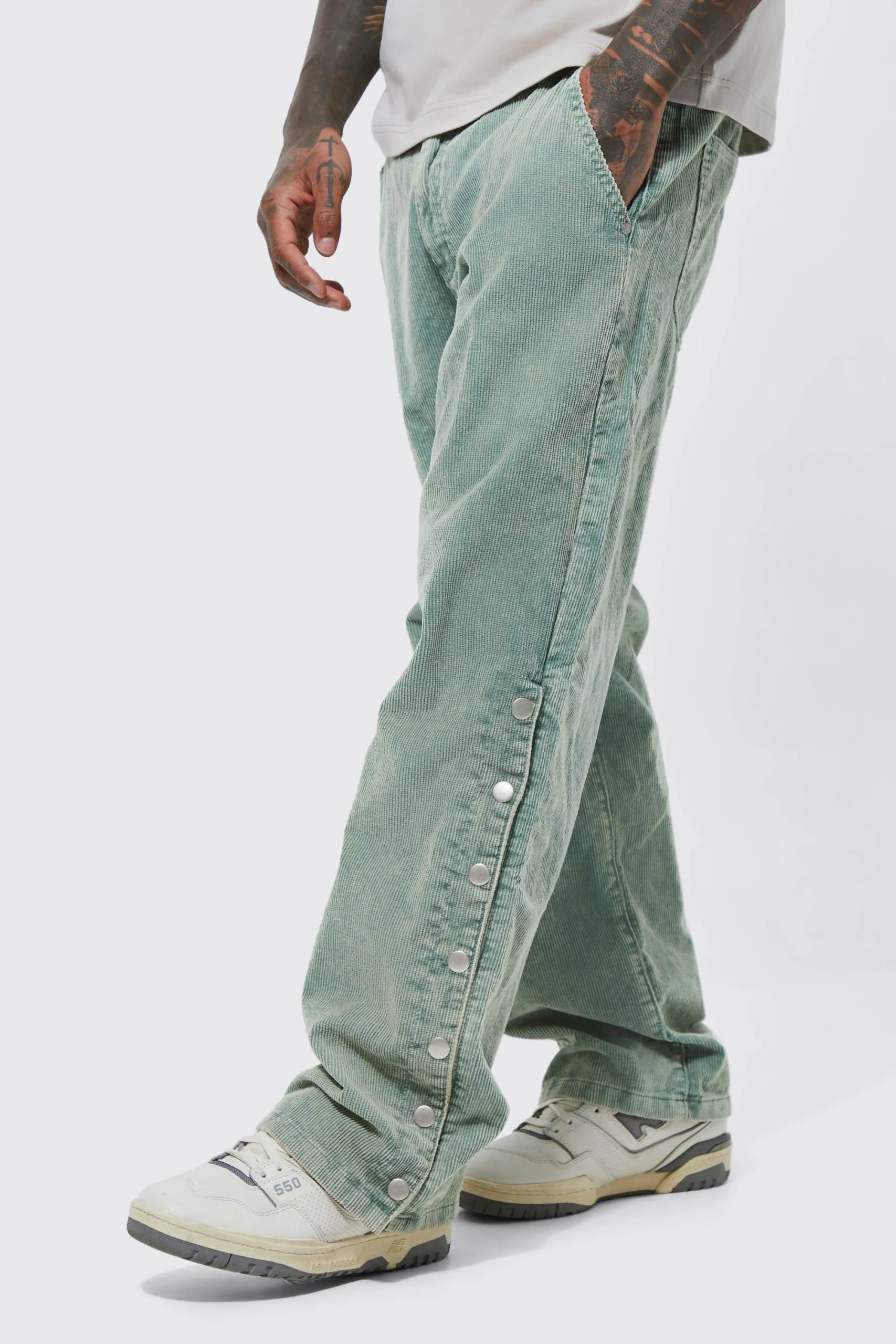 Sale!Acid Wash Relaxed Fit Popper Corduroy Trousers