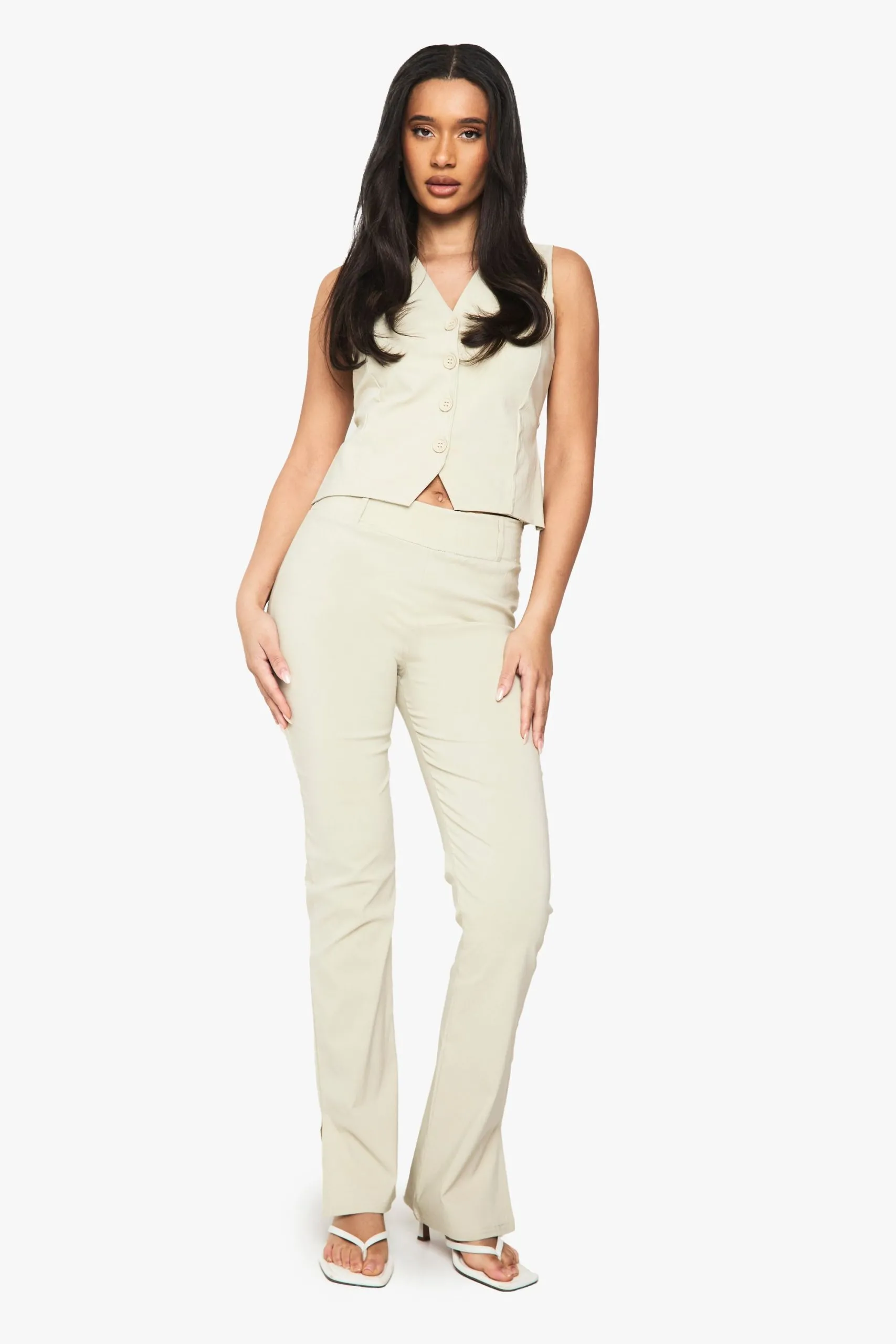 Sale!Beige Elasticated Waist Plisse Wide Led Trouser