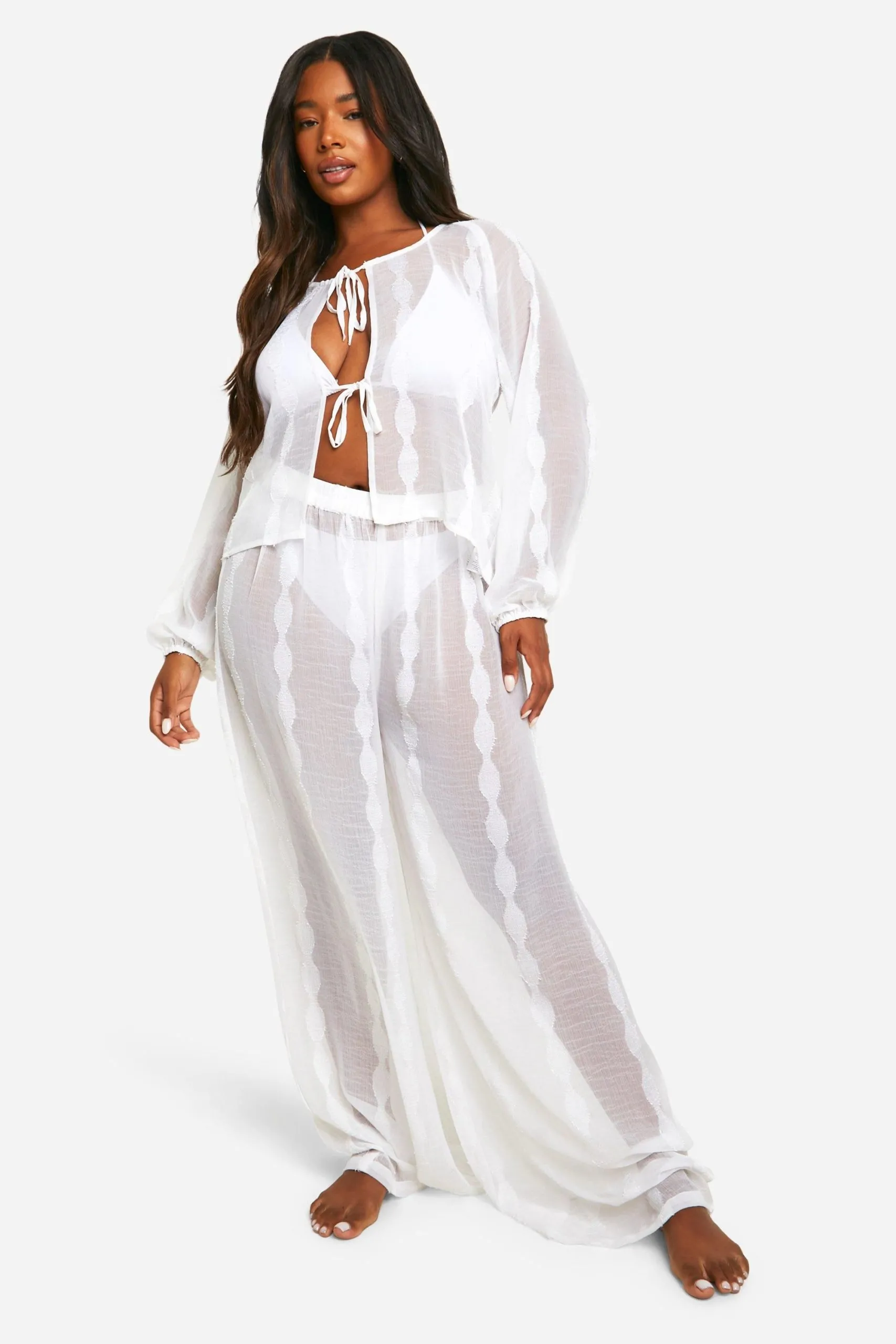 Sale!Plus Stripe Chiffon Beach Trouser Set