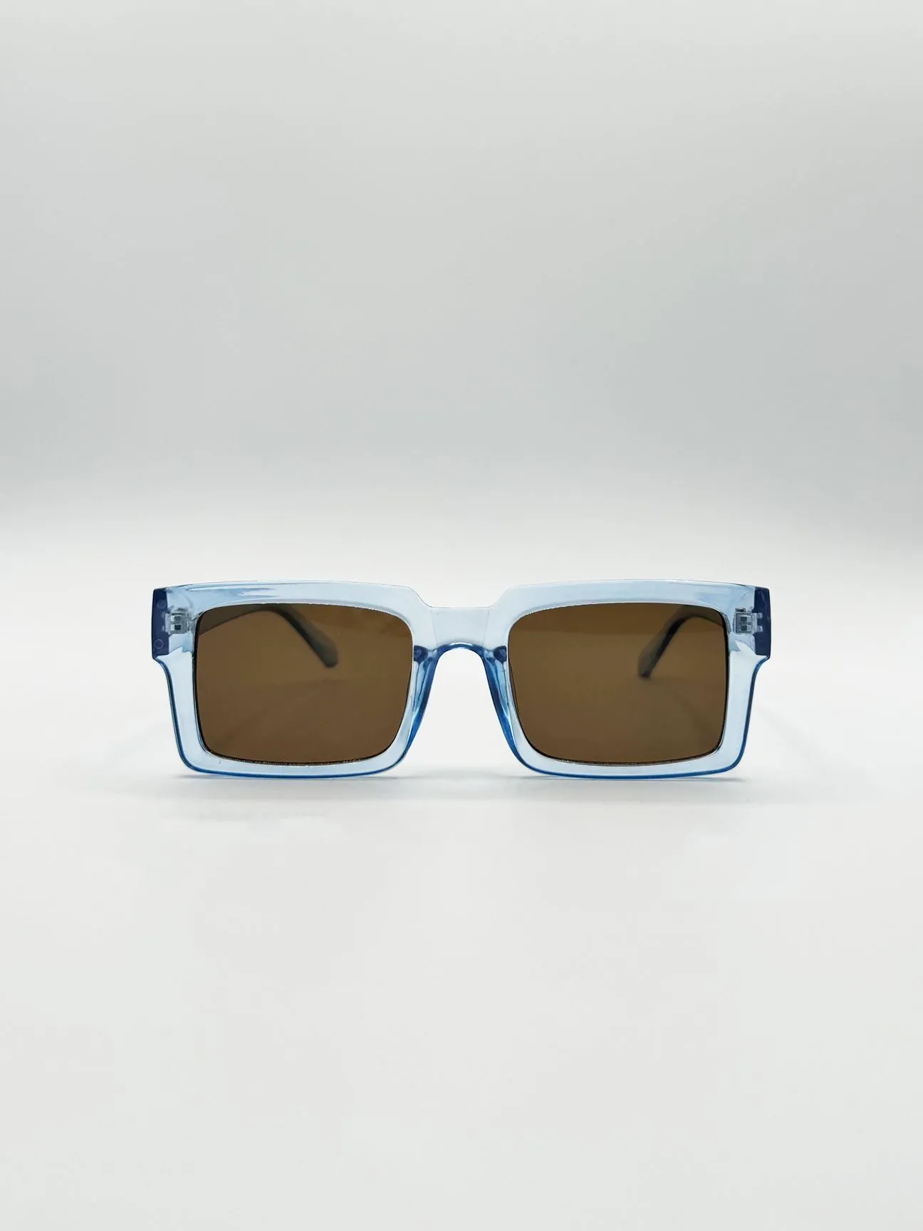Square Frame Sunglasses in Translucent Blue with Brown Lenses