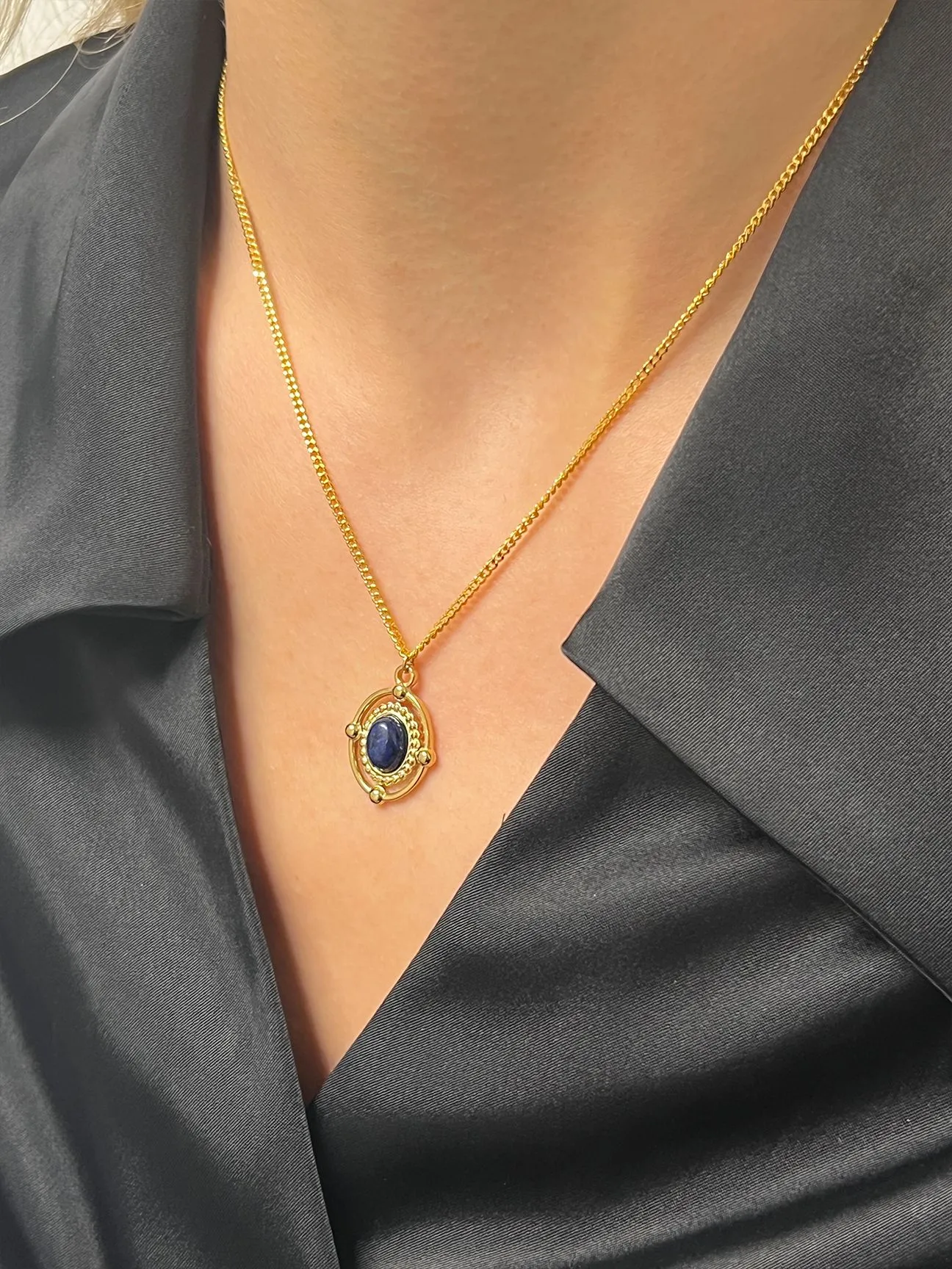 Sale!Vintage Style Gold Plated Necklace With Lapis Lazuli Gemstone Pendant