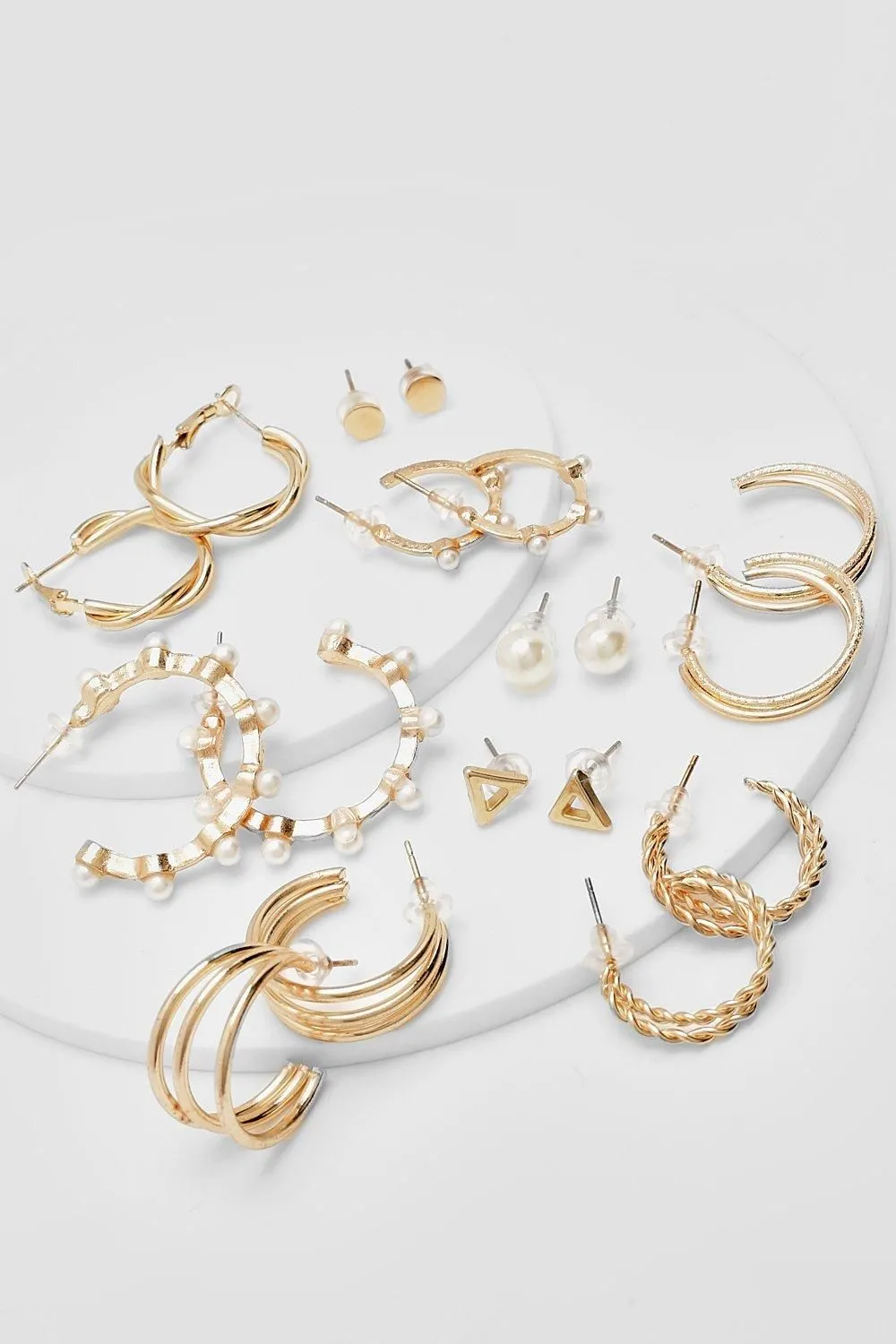 Sale!Faux Pearl Hoop Multipack 9 Earrings
