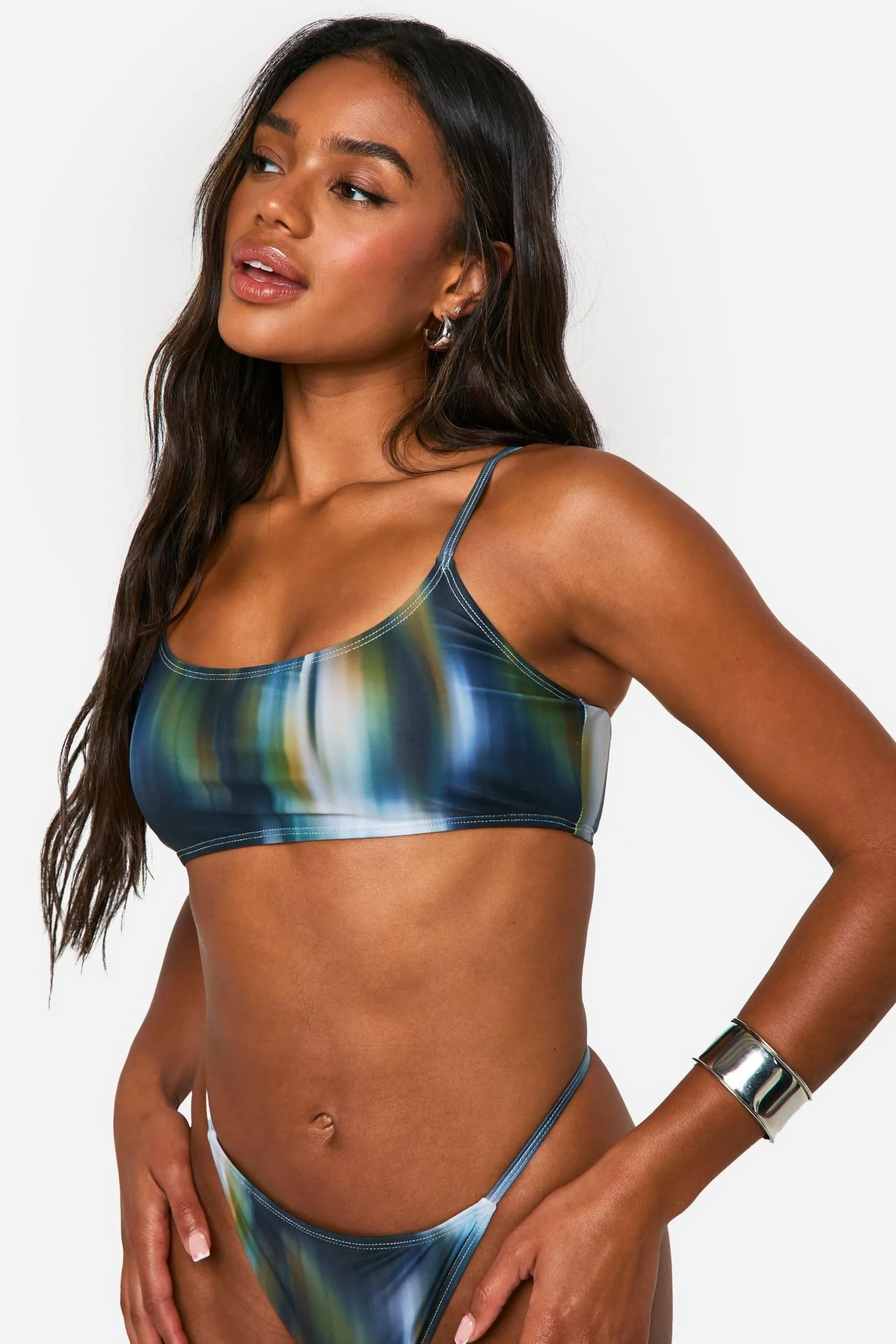 Sale!Blurred Print Crop Bikini Top