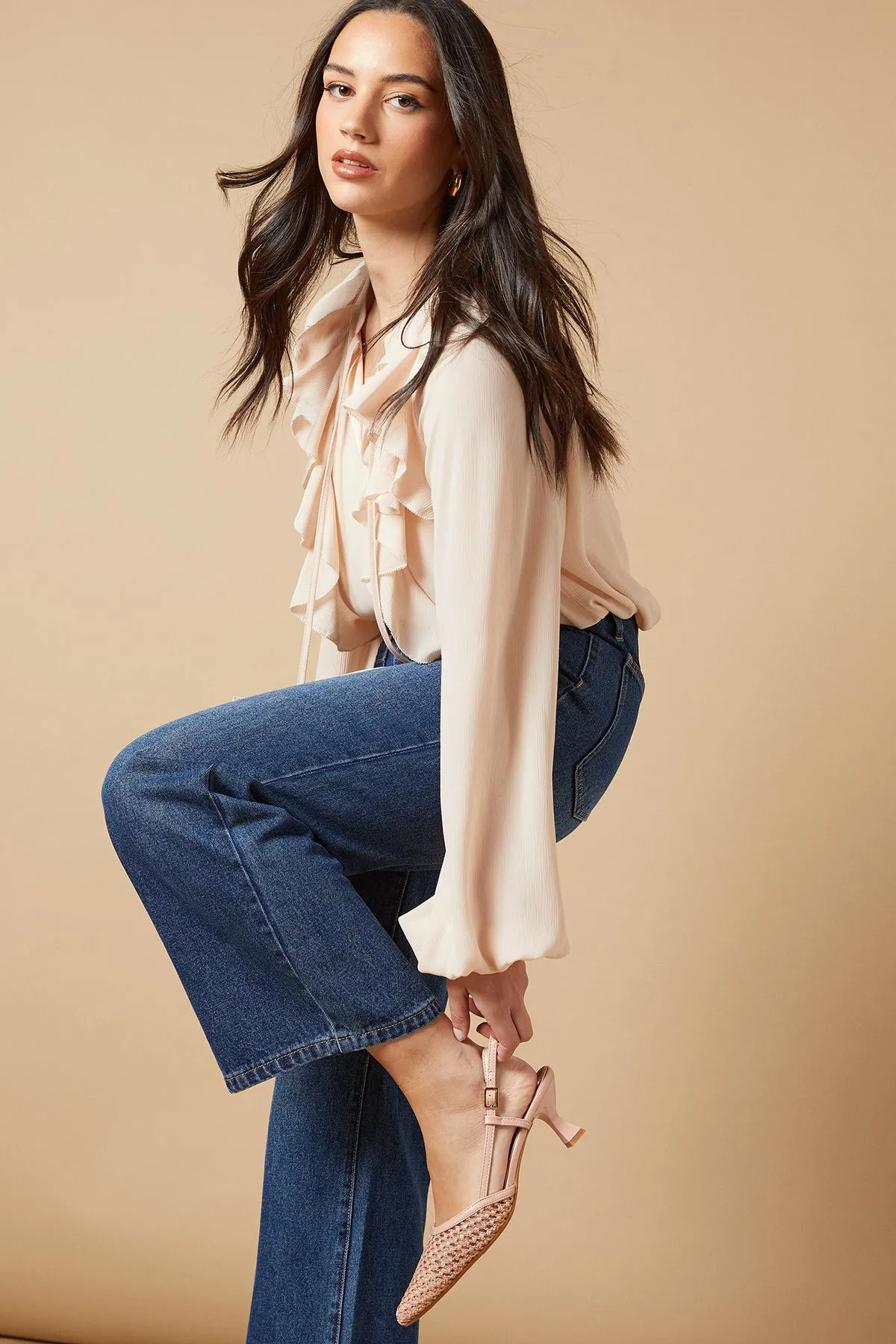 Sale!Sabel Faux Leather Woven Detail Pointed Slingback Kitten Heeled Shoes