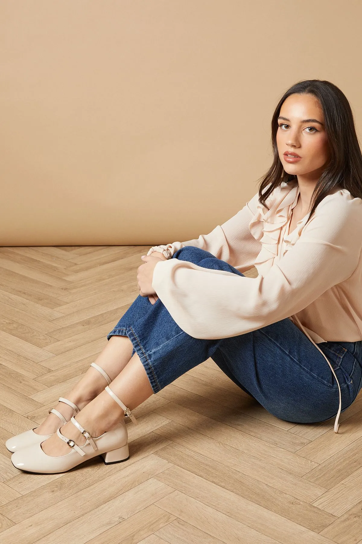 Sale!Sylvalyn Faux Patent Leather Double Mary Jane Low Heeled Shoes