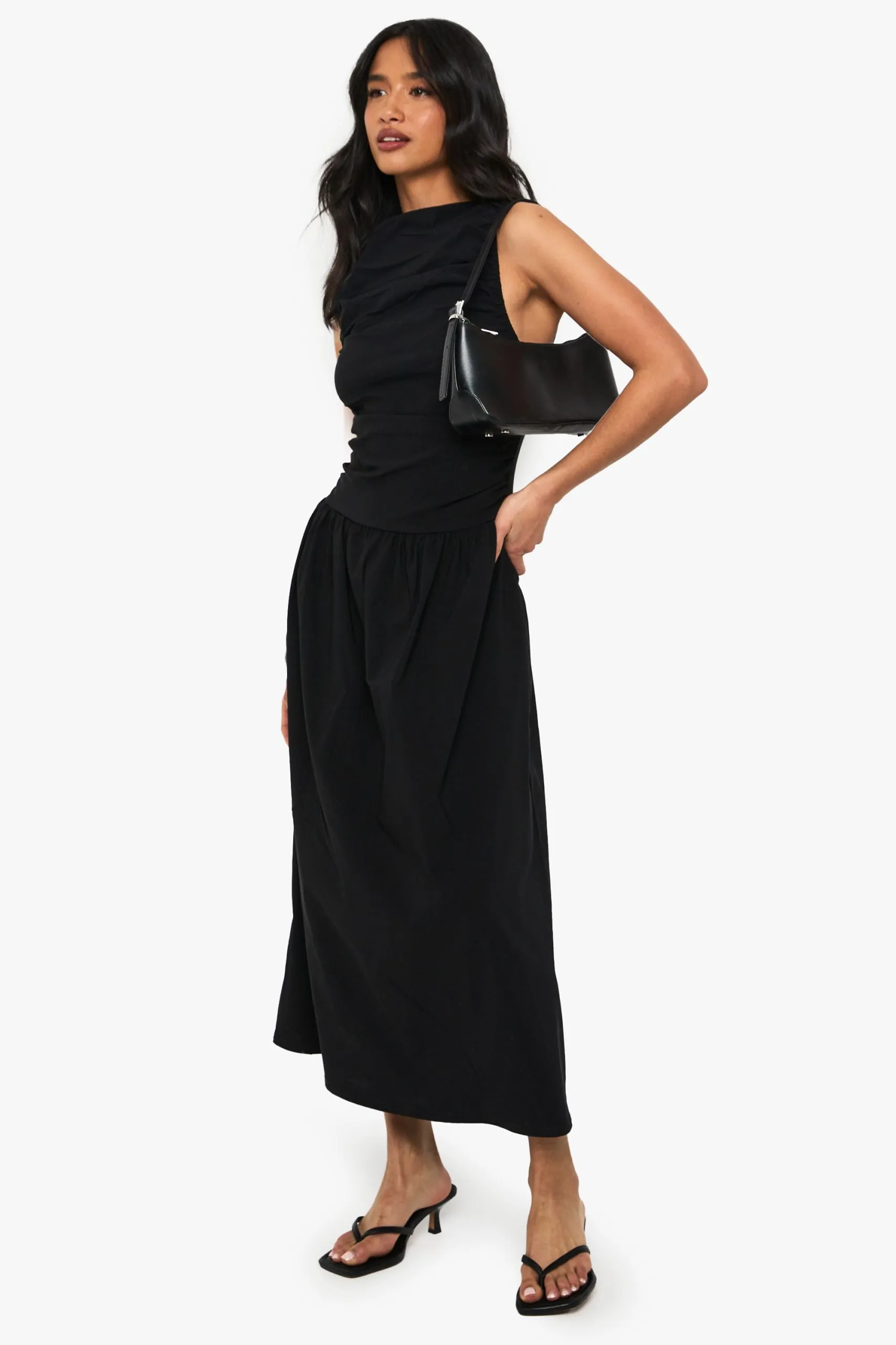Sale!Petite Ruched Drop Waist Sleeveless Midaxi Dress