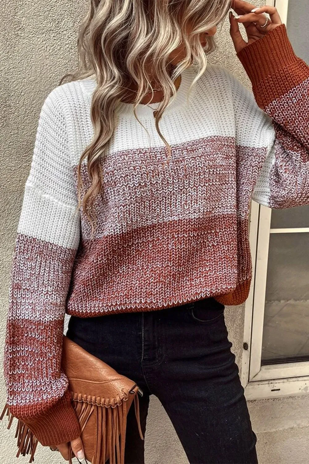 Sale!Color Block Drop Shoulder Ribbed Trim Sweater