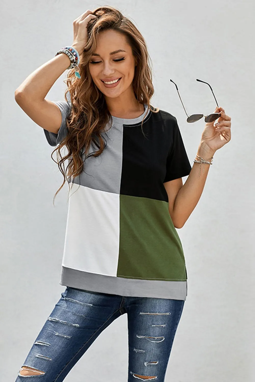 Sale!Colorblock T-shirt with Slits