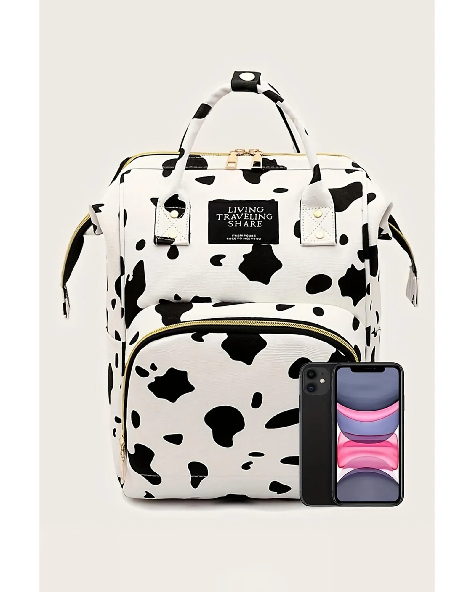 Sale!Bright White Cow Spot Print Multi Pocket Canvas Backpack