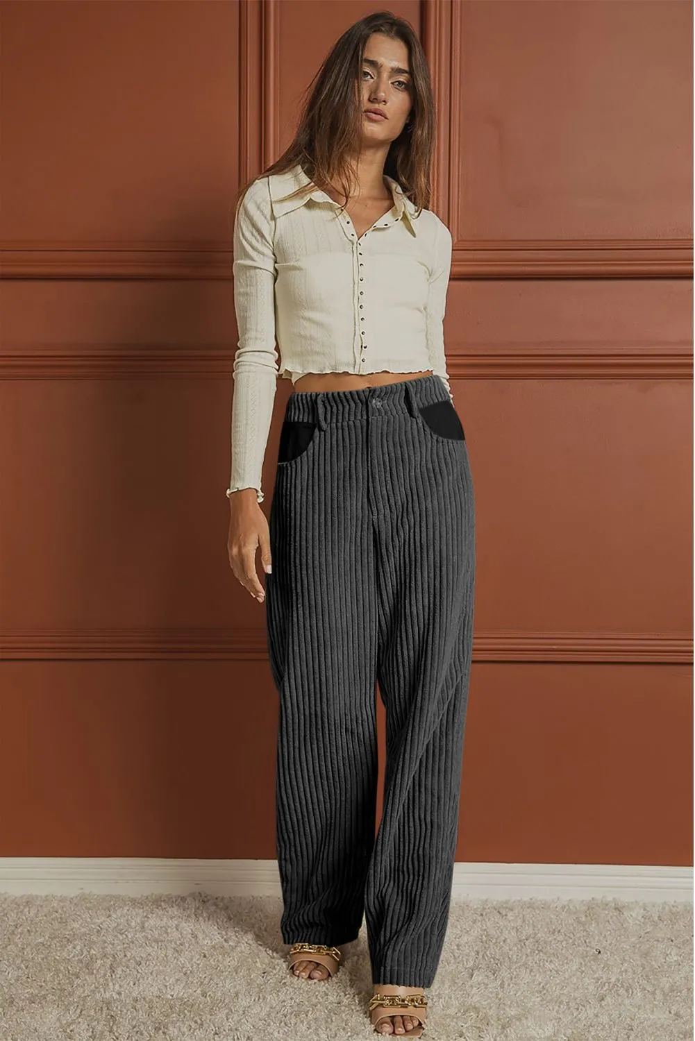 Sale!Contrast Patched Wide Leg Corduroy Pants