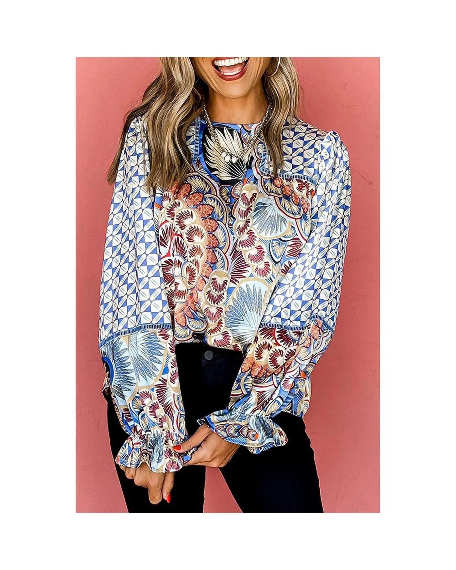 Sale!Draped Paisley Print Open Front Overlay Top with Ruffles