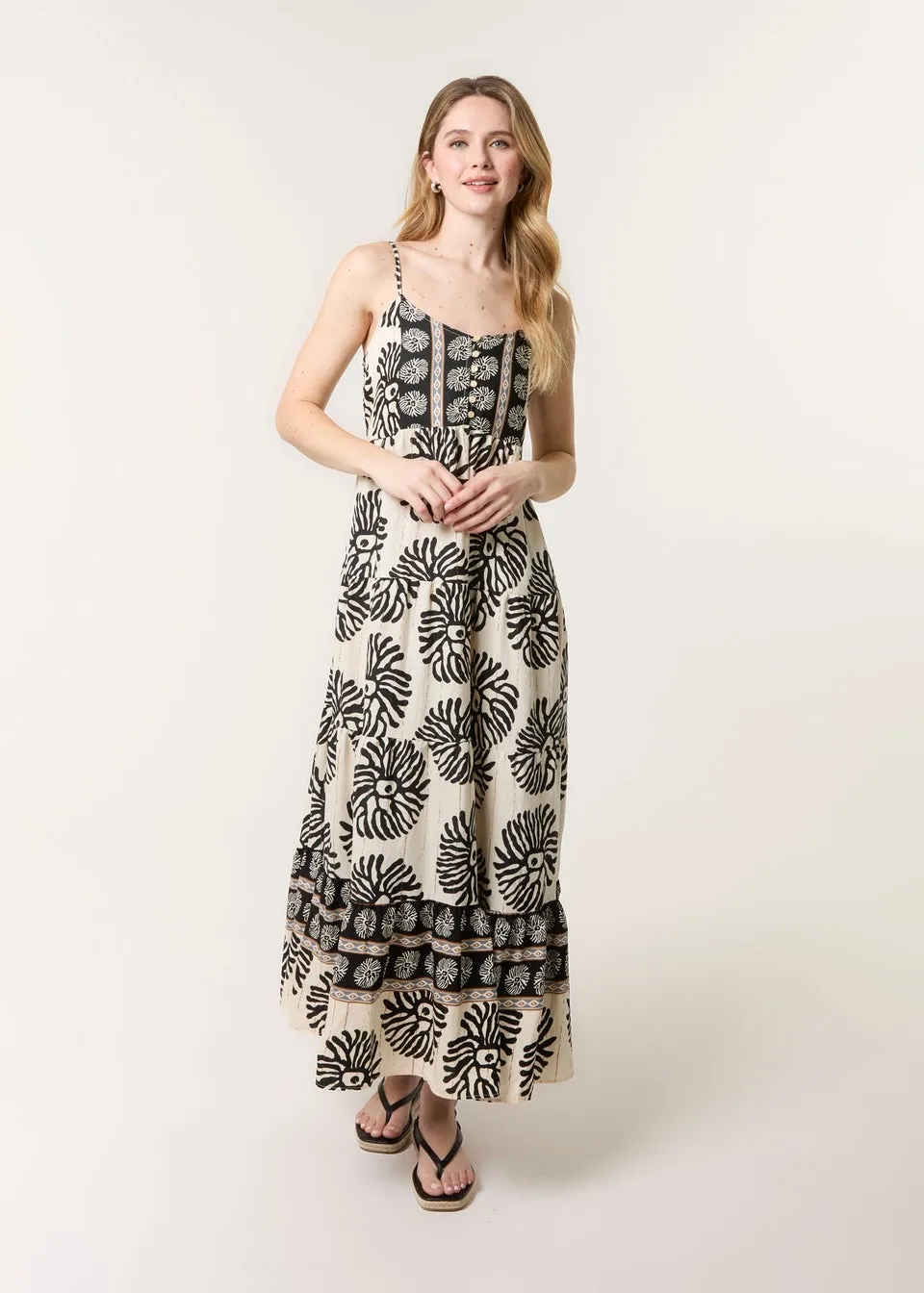 Sale!Blue Vanilla Black Abstract Strappy Button Front Maxi Dress