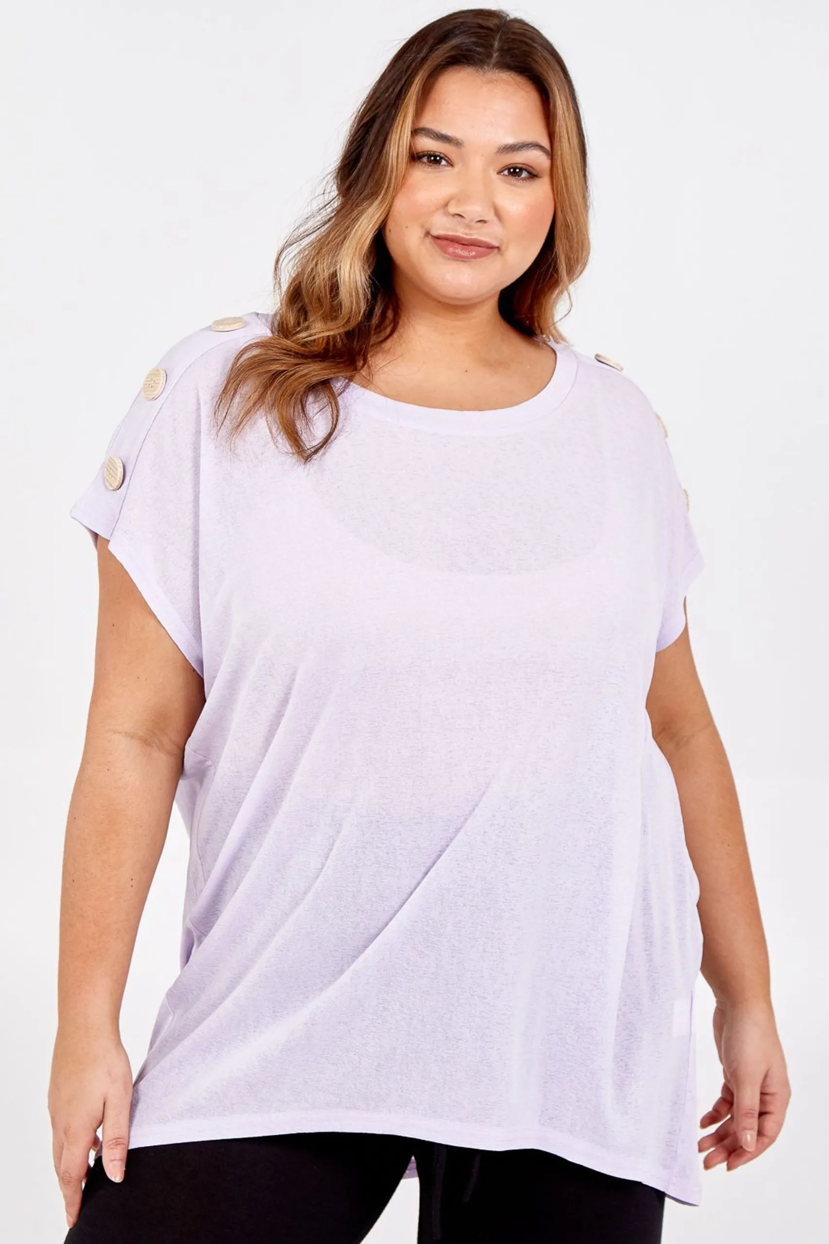 Lilac Curve Buttoned Shoulder Lilac Oversized Top