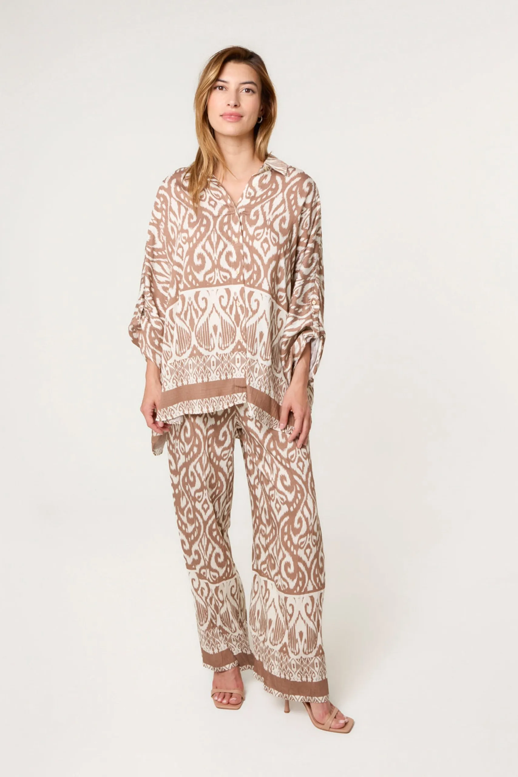 Light Brown Printed Oversized Shirt