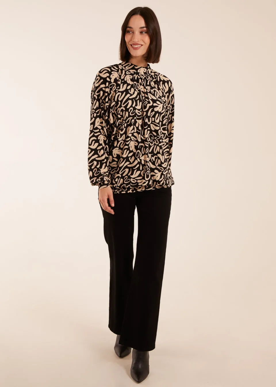 • Blue Vanilla Black Long Sleeve Pleated Top