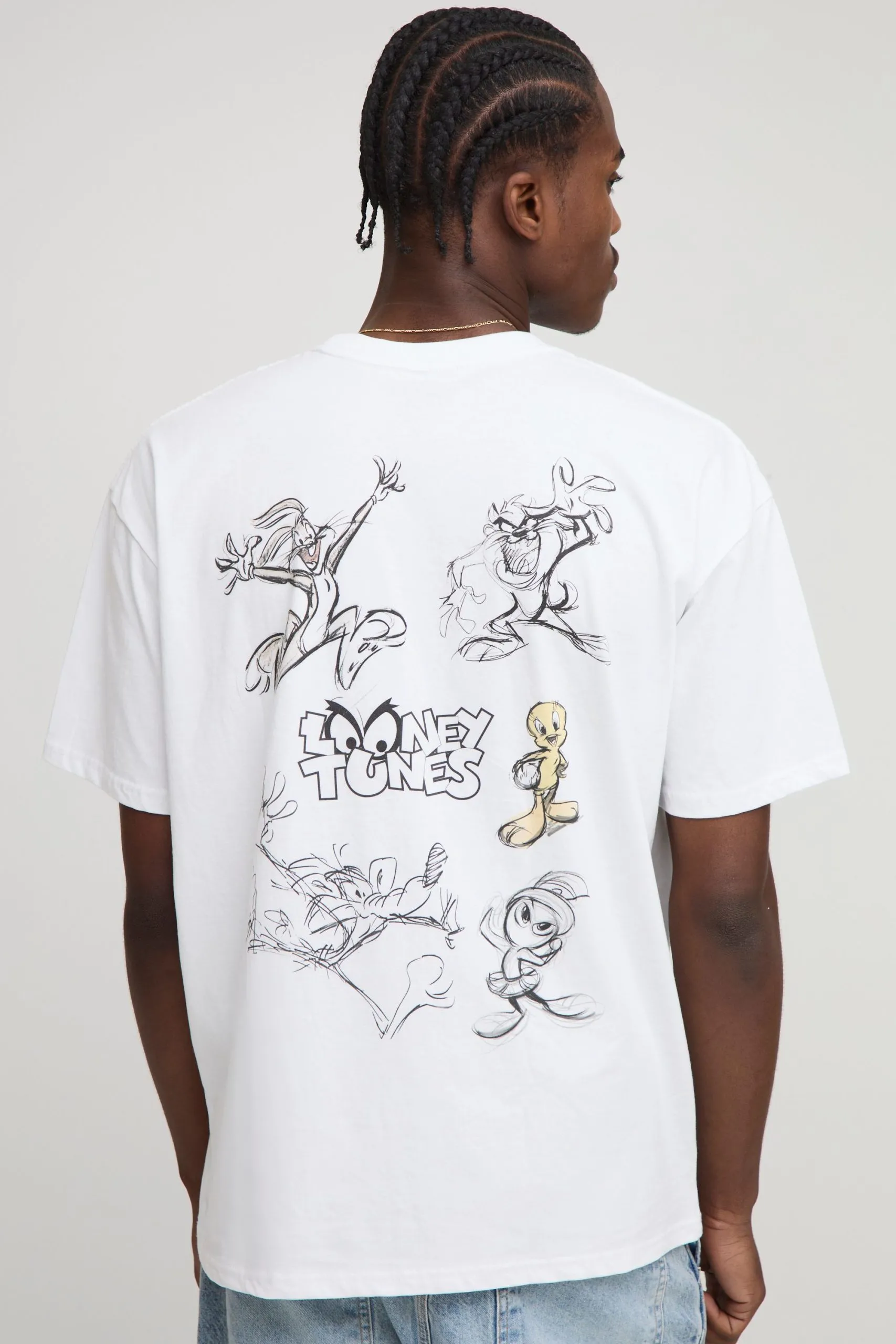 White Oversized Looney Tunes License Printed T-Shirt