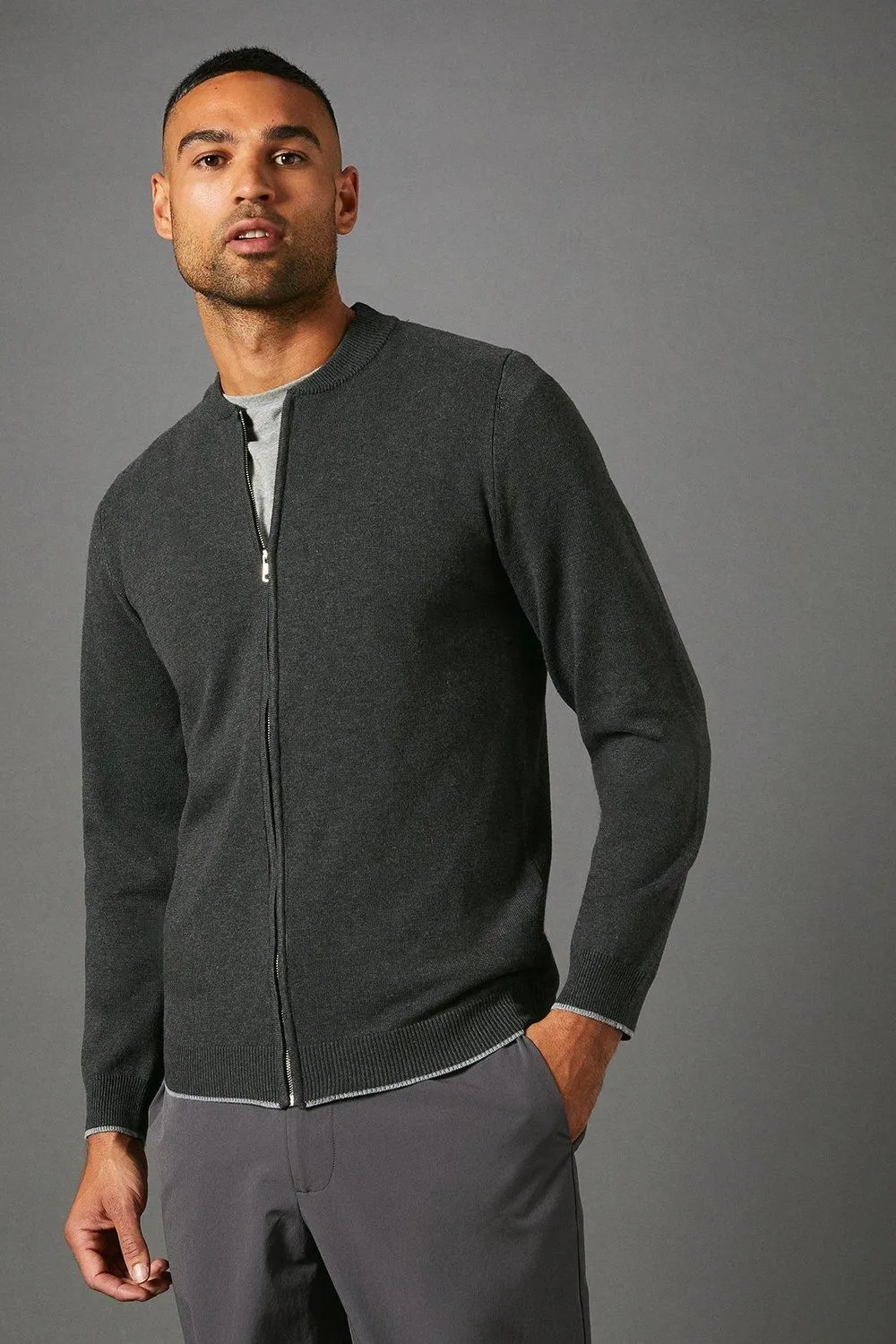 Sale!Charcoal Knitted Zip Through Bomber