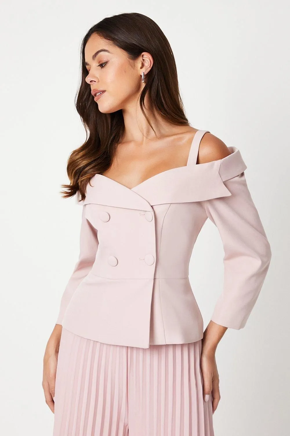 • 3/4 Sleeve Off Shoulder Peplum Jacket