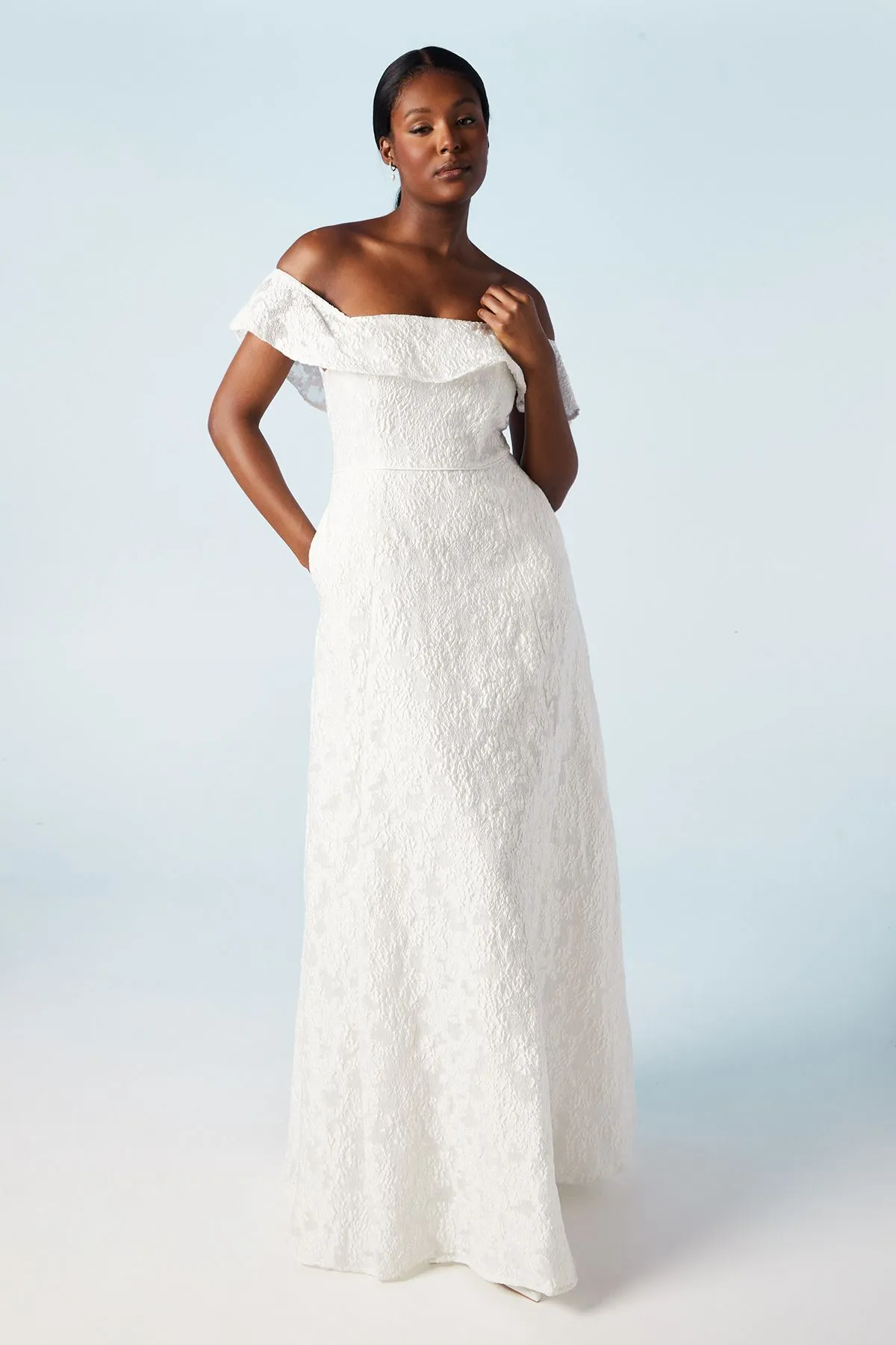 Sale!Bardot Jacquard Full Skirted Wedding Dress