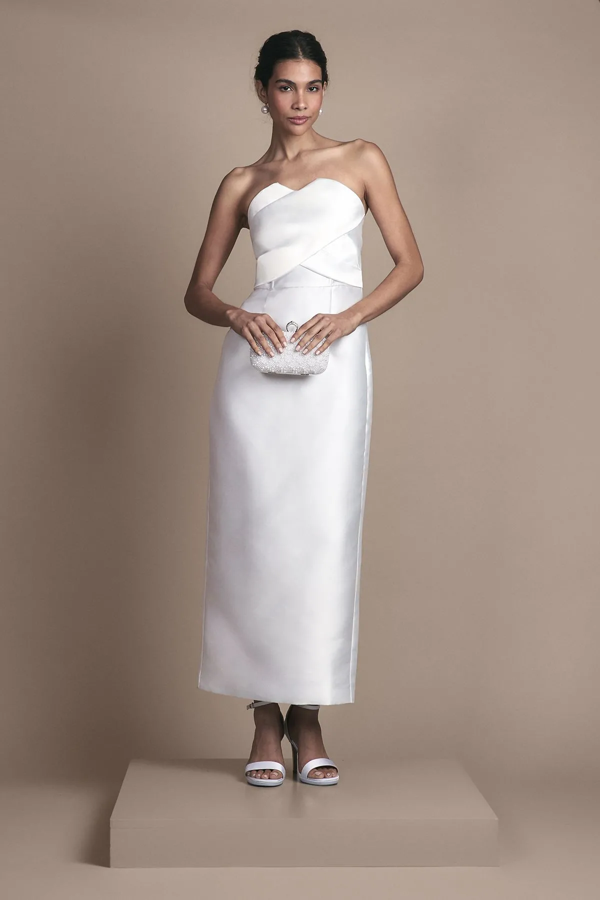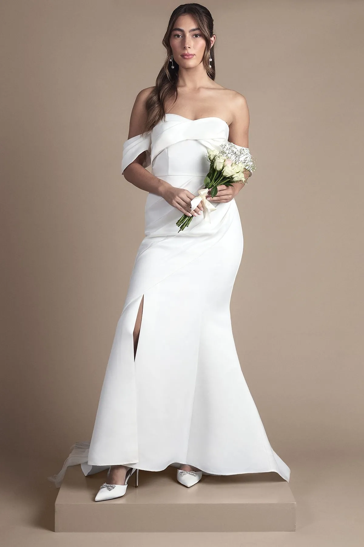 Sale!Bardot Twist Structured Satin Maxi Wedding Dress with Fishtail Train