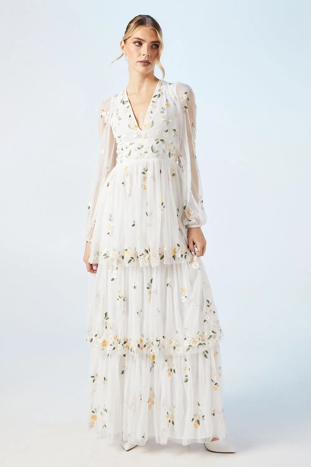 Sale!Boho Long Sleeve Embroidered Maxi Wedding Dress
