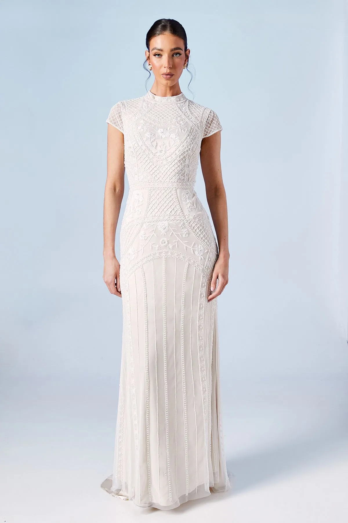 Sale!Beaded and Embellished Cap Sleeve Fishtail Wedding Dress