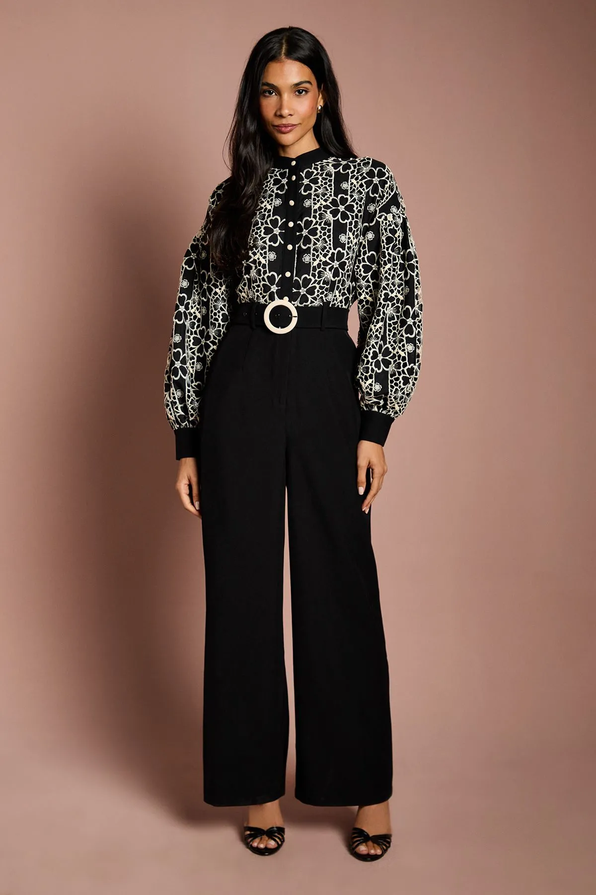 Sale!Blouson Sleeve Belted Wide Leg Jumpsuit