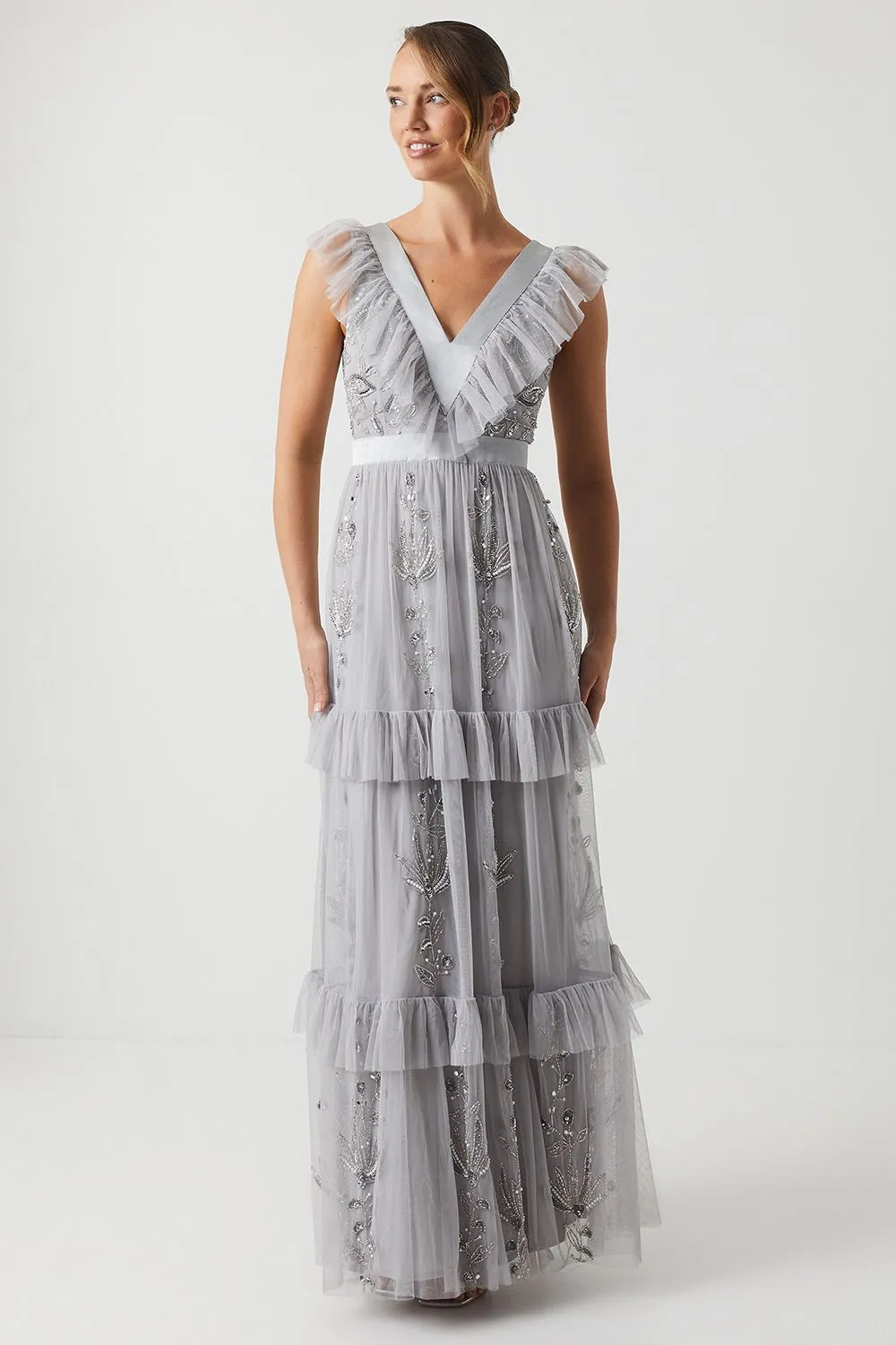 Sale!Tiered Mesh Bridesmaid Dress With Embellishment
