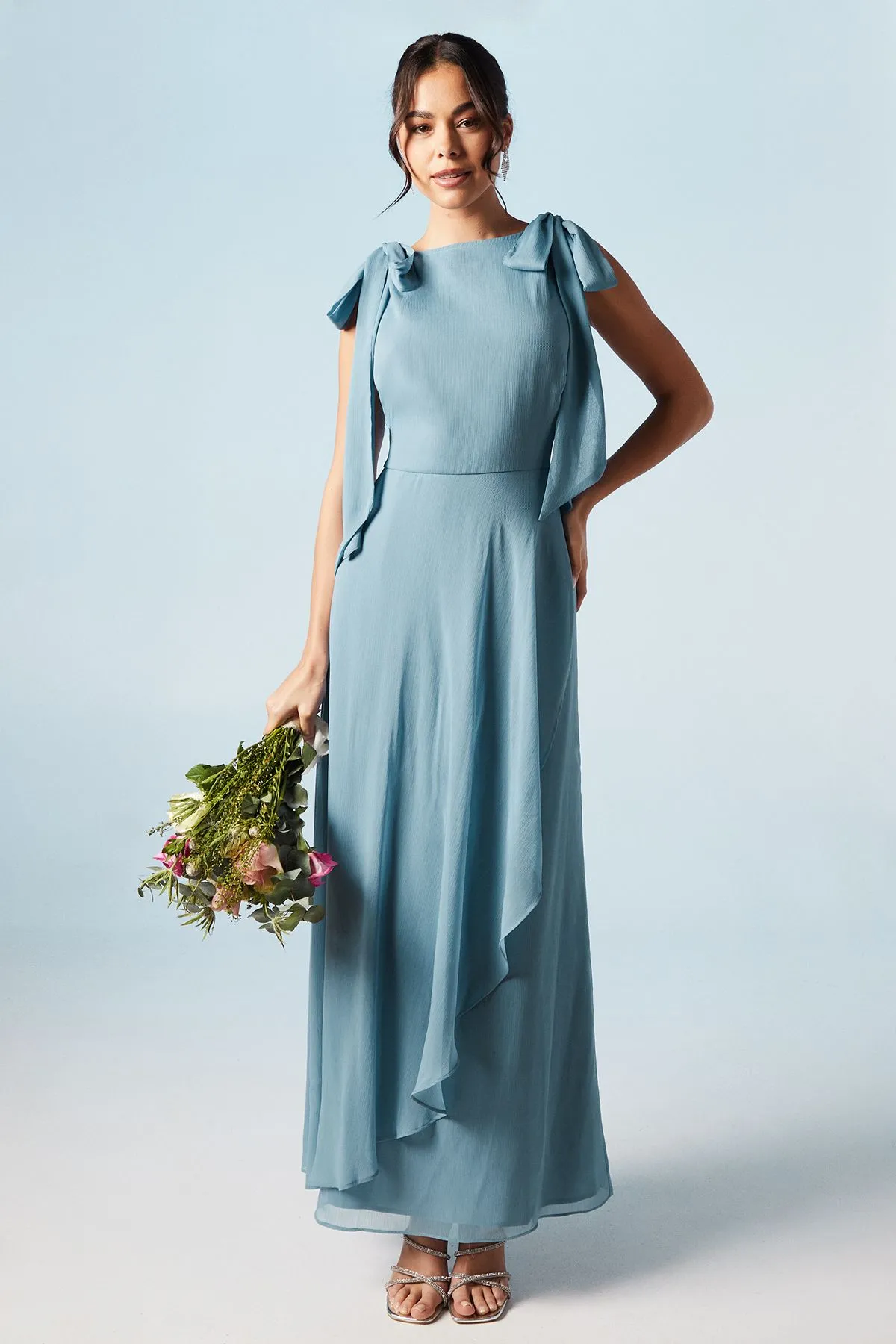 Sale!Tie Shoulder Waterfall Chiffon Bridesmaid Maxi Dress