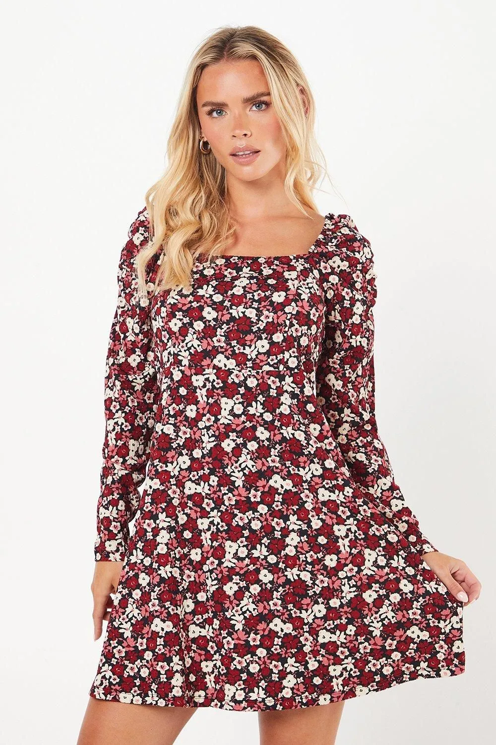 Sale!Petite Ditsy Floral Square Neck Mini Dress