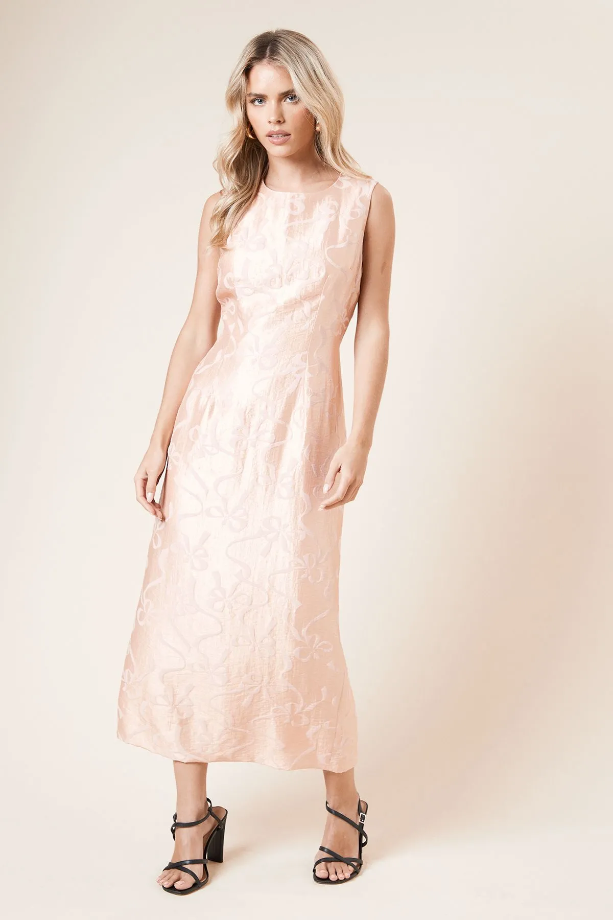 Sale!Petite DP Luxe Satin Bow Print Midi Dress