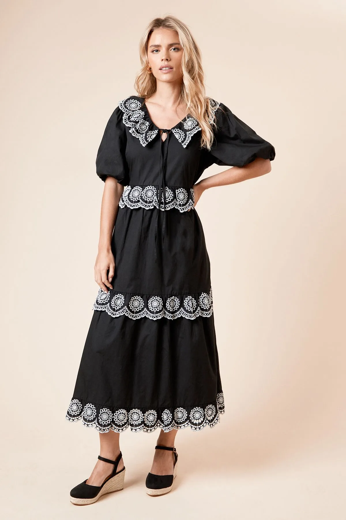 Sale!Petite Floral Printed Lace Trim Blouson Sleeve Midi Dress