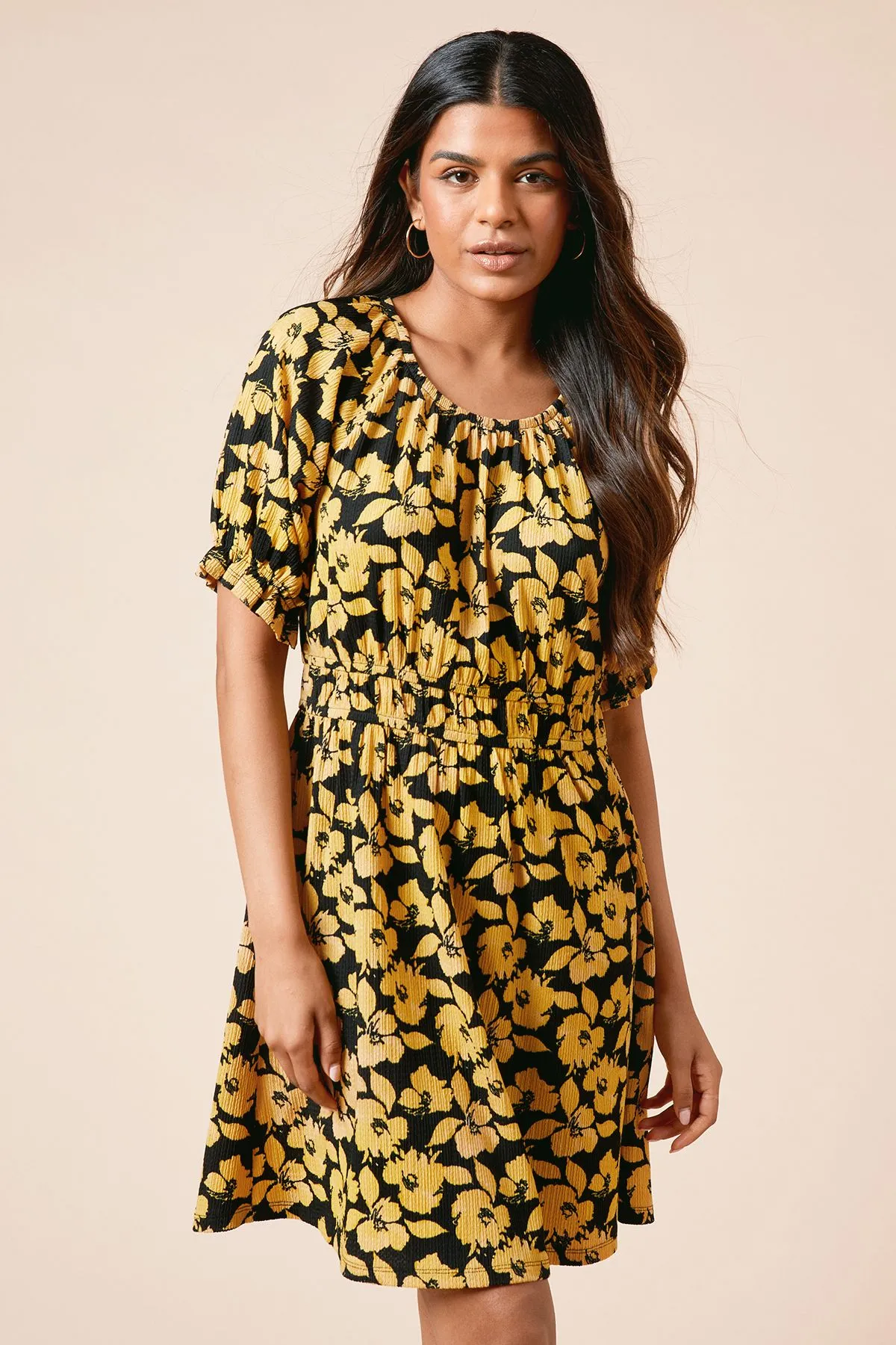 Sale!Petite Floral Pleat Front Short Sleeve Jersey Mini Dress