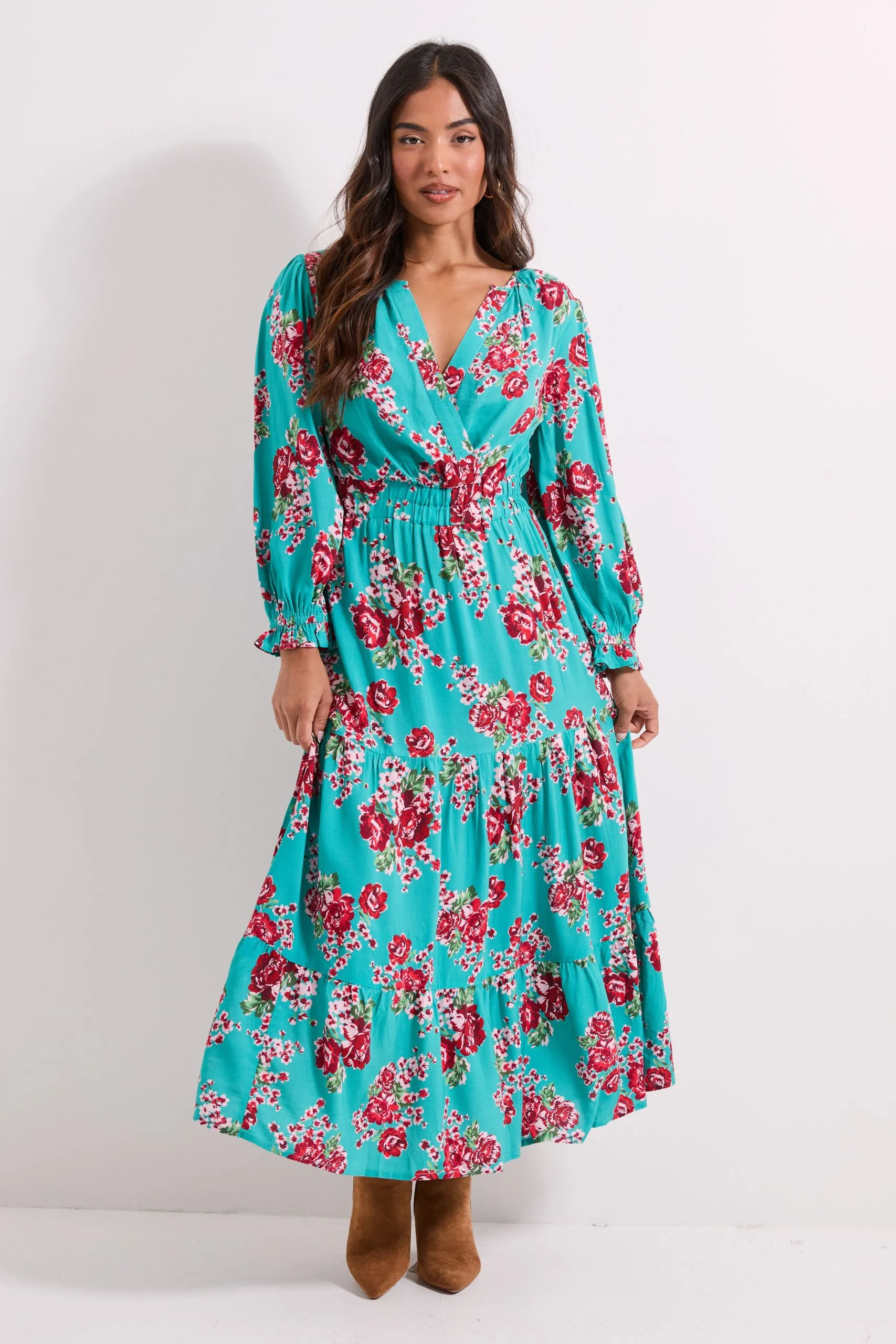 Sale!Petite Floral Wrap Front Tiered Skirt Midaxi Dress
