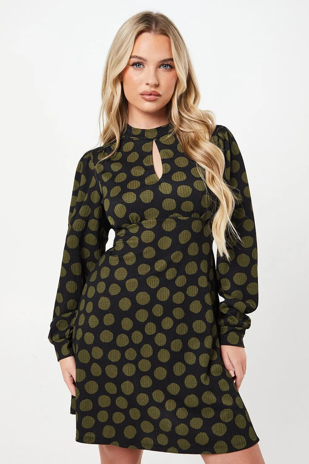 Sale!Petite Khaki Spot Keyhole Mini Dress