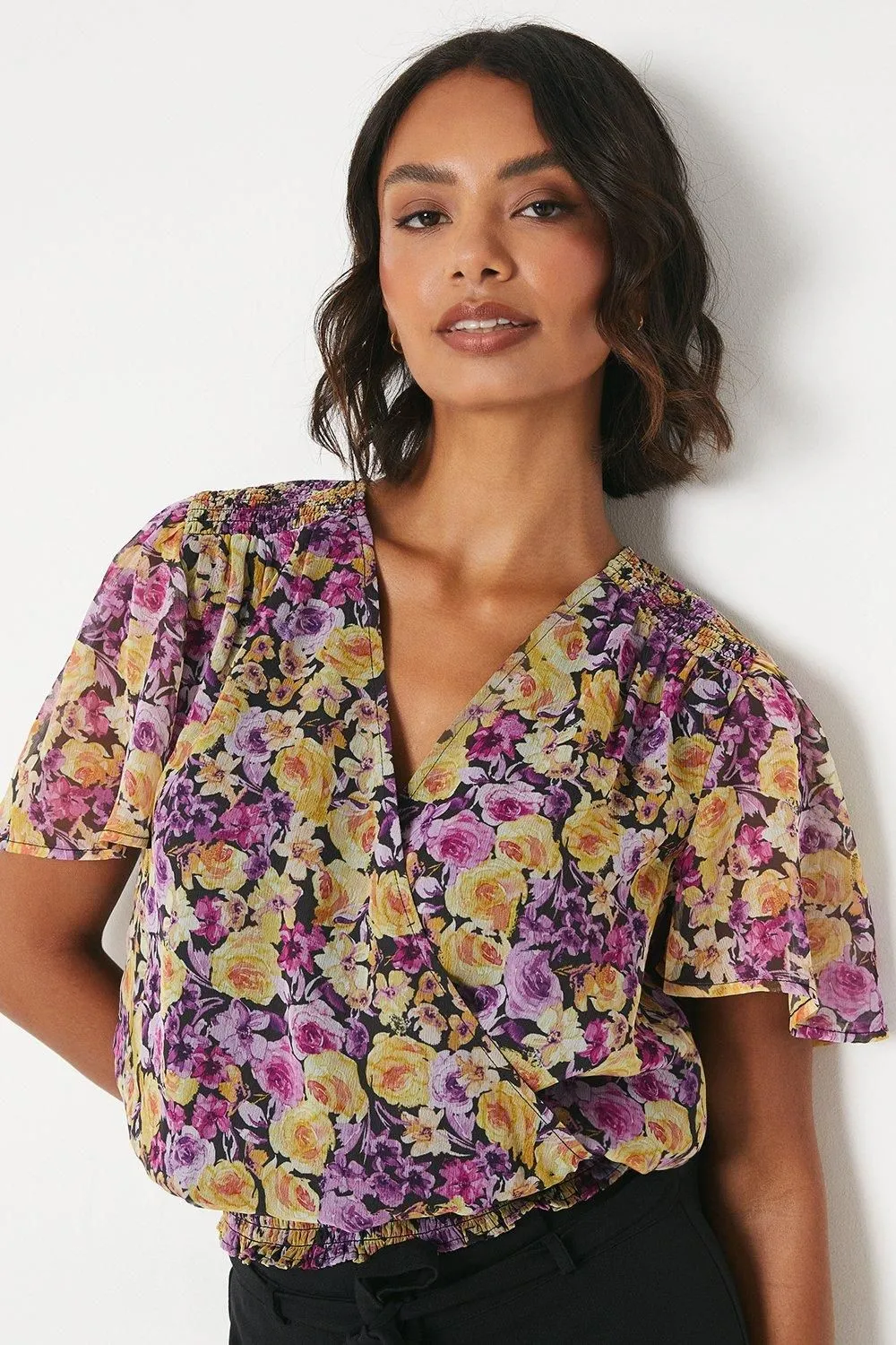Sale!Tall Floral Chiffon Shirred Hem Wrap Blouse